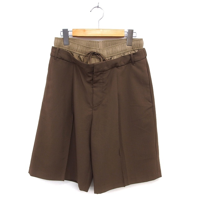 イェッカヴェッカ YECCA VECCA Editt by フェイクレイヤード ハーフパンツ ワイド タック ドローストリング F 茶 ブラウン /NT31