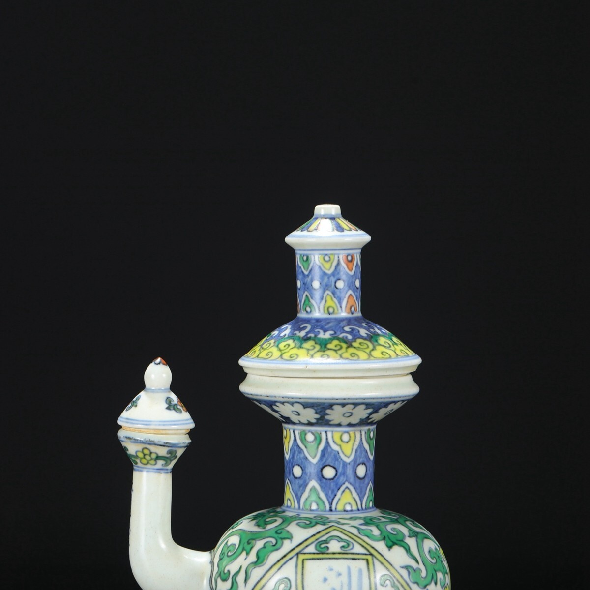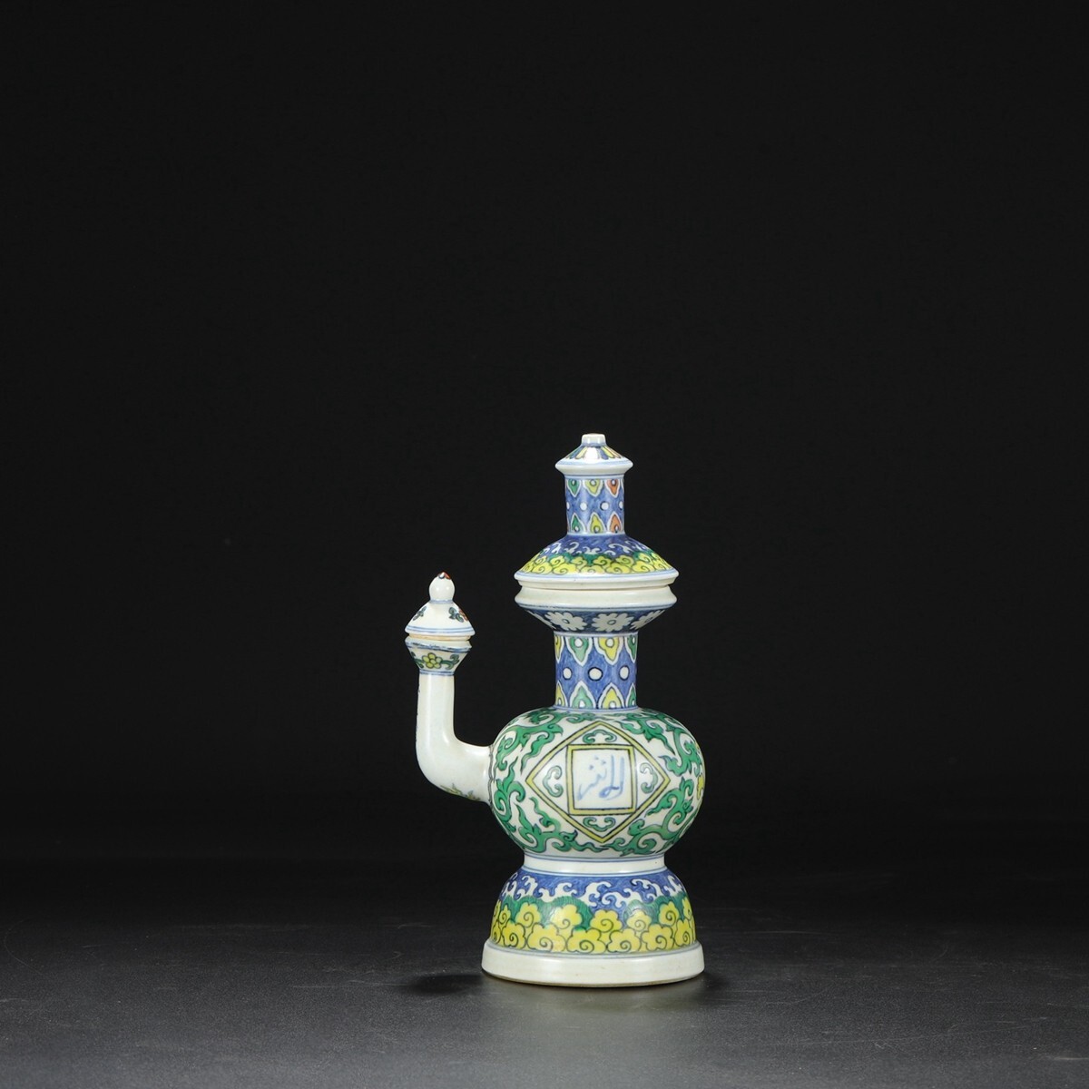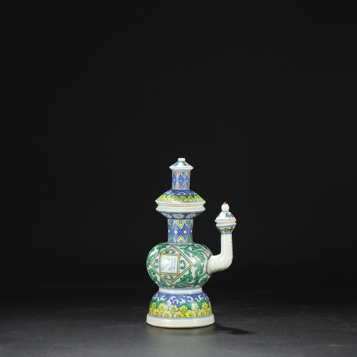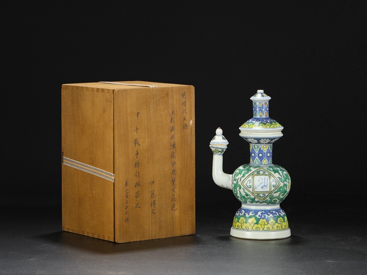 明代 大明正徳年製 陶磁器 五彩海水纏枝牡丹梵文花澆【仁】染付 置物擺件 古賞物 古美術 中国古玩 蔵出