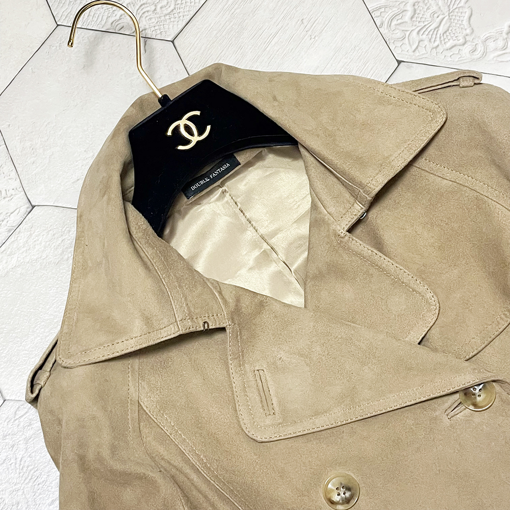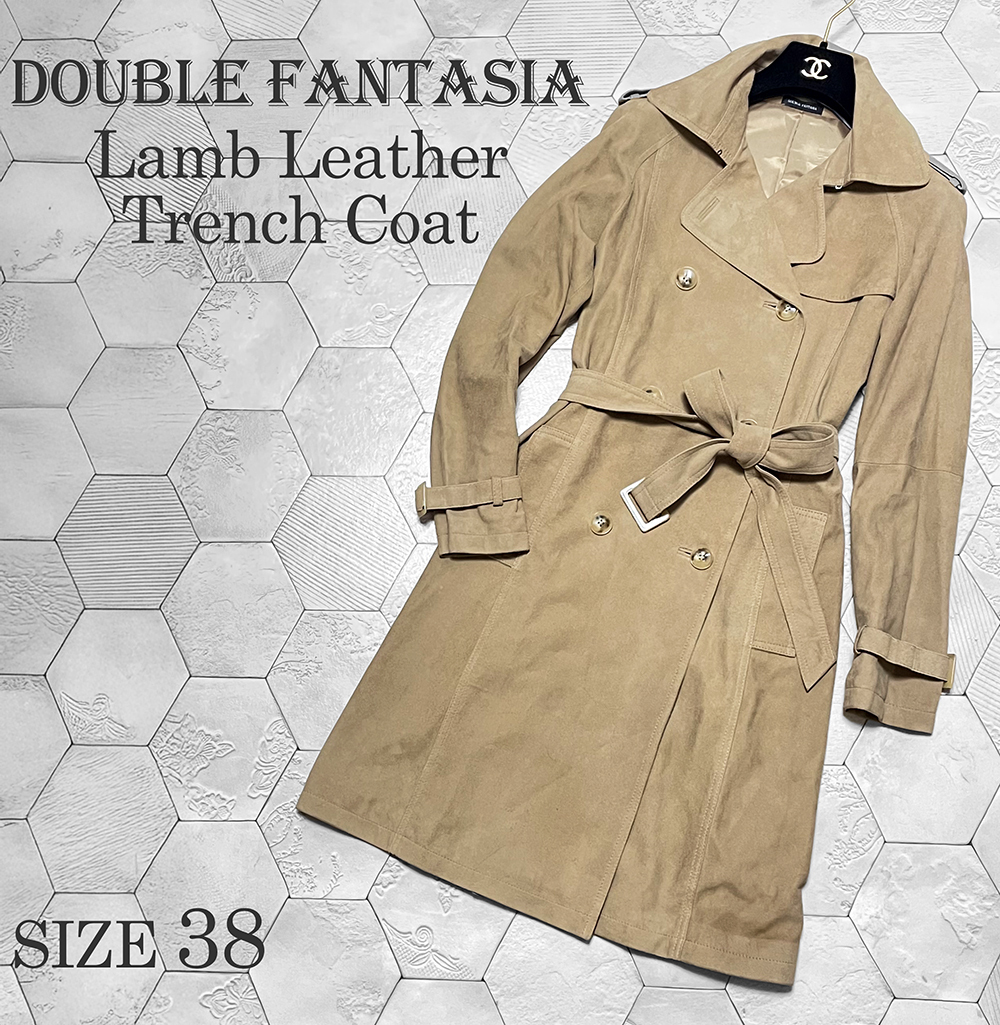 ◆美品♪ダブルファンタジア【DOUBLE FANTASIA】極上ラムスエード 羊革 トレンチコート 38 ベージュ◆