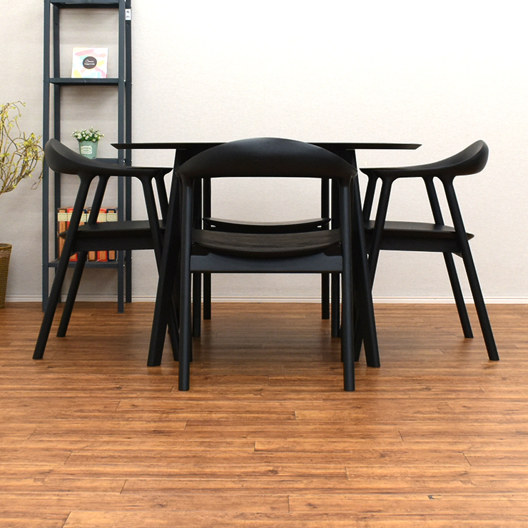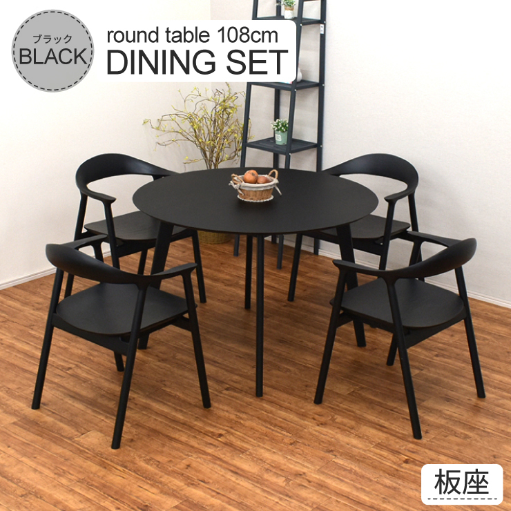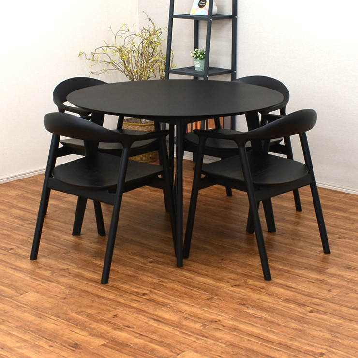 丸テーブル ダイニングテーブル 5点セット 幅108cm オーク材 cote108-5-tom-i-bk ブラック色 4人用 板座 北欧 44s-5k tw