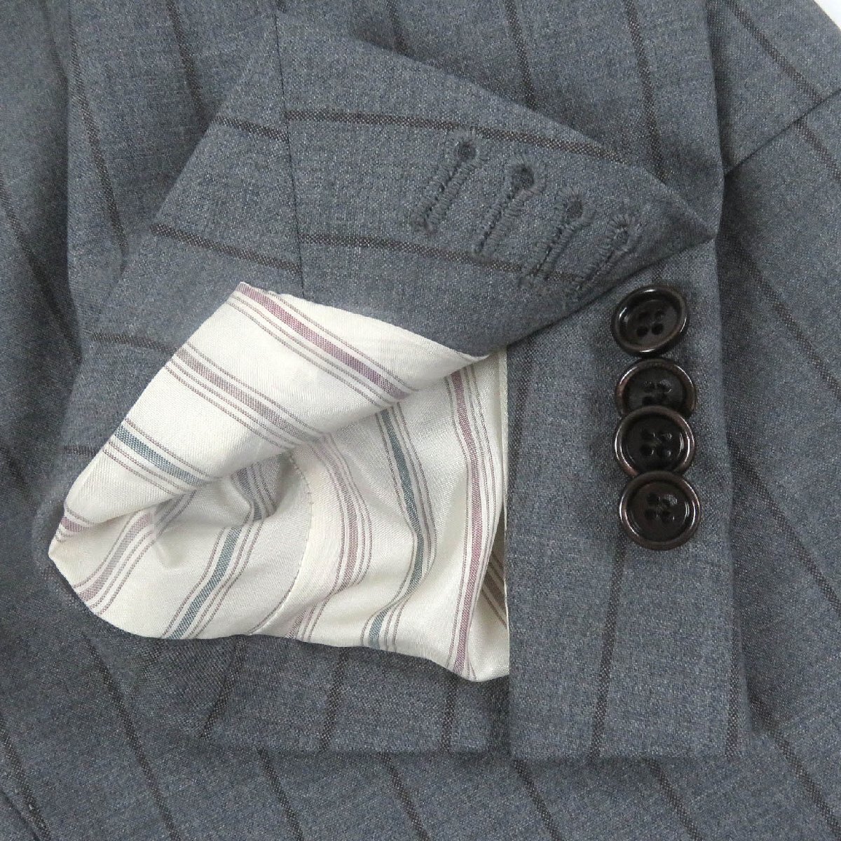 サイズ (size) | 【表記】50 【実寸】ジャケット?身幅:約45cm 着丈:約71cm 肩幅:約45cm 袖丈:約61cm パンツ?ウエスト:約80cm ウエスト出し幅:約3cm 股上:約23cm 股下:約66cm 裾幅:約18cm ダブル幅:約4cm わたり幅:約28cm 【仕様】ジャケット:シングル 3ボタン サイドベンツ 裏地無し 本切羽 パンツ:1タック ダブル 【日本サイズに関しましては各ブランド公式サイトをご参照下さい】 | ||||||||||||||||
