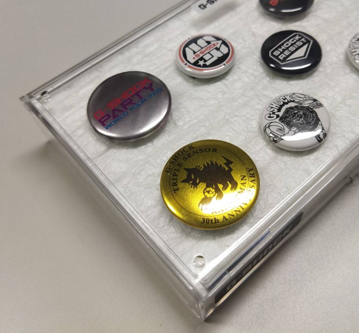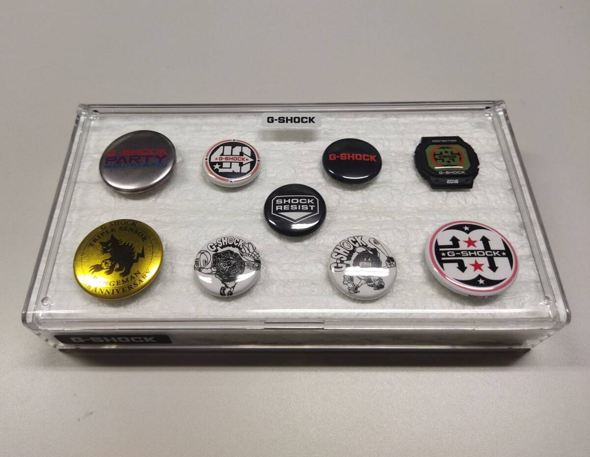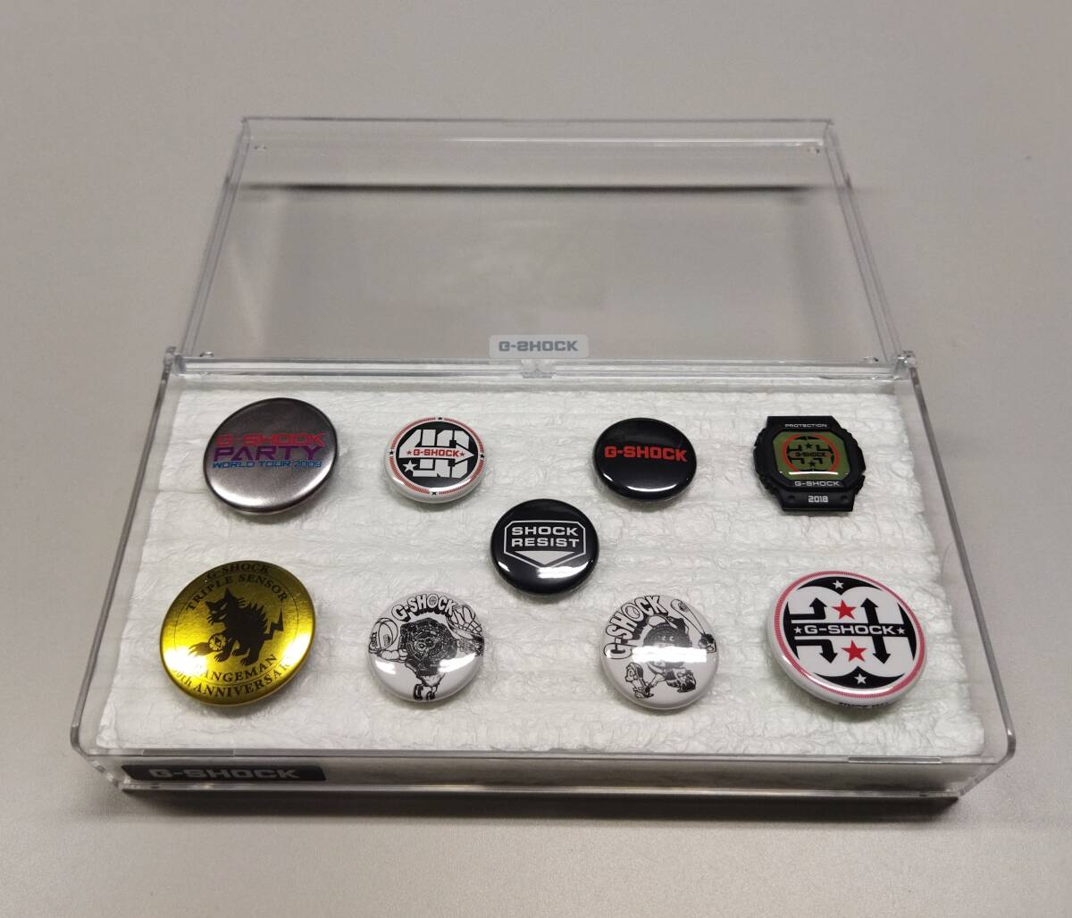 ●皆さんよくご存じのブランド【G-SHOCK/G-ショック】からリリースされた【非売品ノベルティーセット・30th/35th/40th/G-SHOCK PARTY・バッジ/バッチ/ピンズ・9個・クリアケース】をセットにしてみました。
