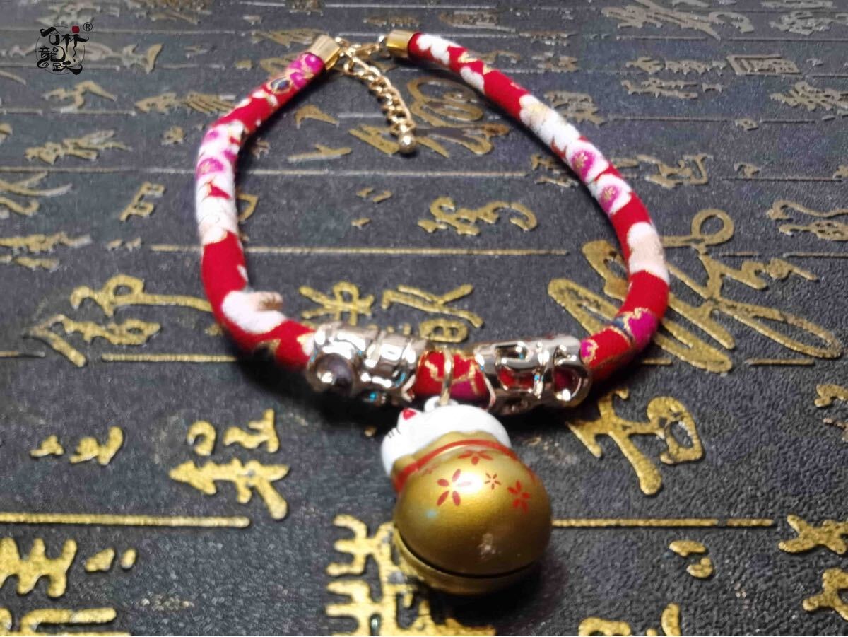商品名:ファッショントレンド 美しい刺繍帯 財を招く猫鈴 ペット 首輪