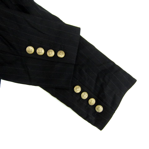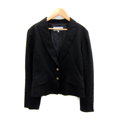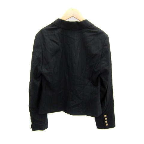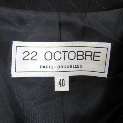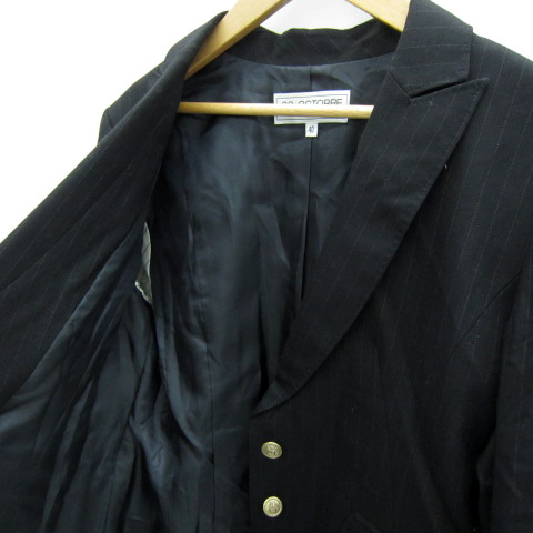 22オクトーブル テーラードジャケット ミドル丈 シングルボタン 総裏地 ストライプ柄 シルク混 40 L 黒 ブラック /SY23 レディース