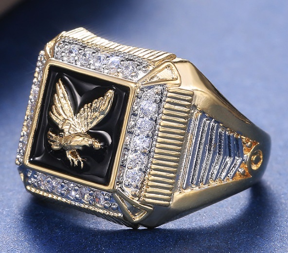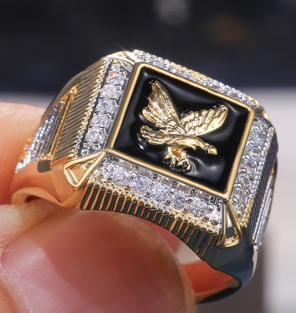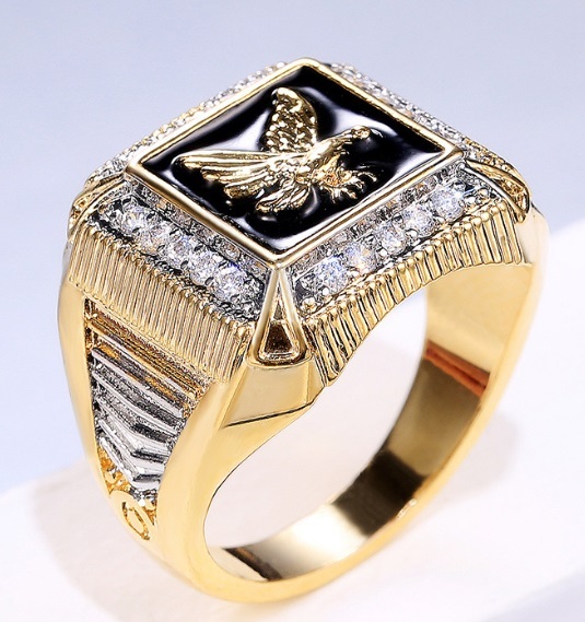 新品販売 激レア 指輪 メンズ メッキ 復古 鷹柄 パンク風 リング ピカピカ アクセサリー サイズUS 10#/Japan20#