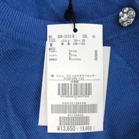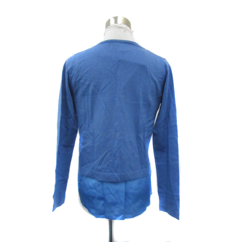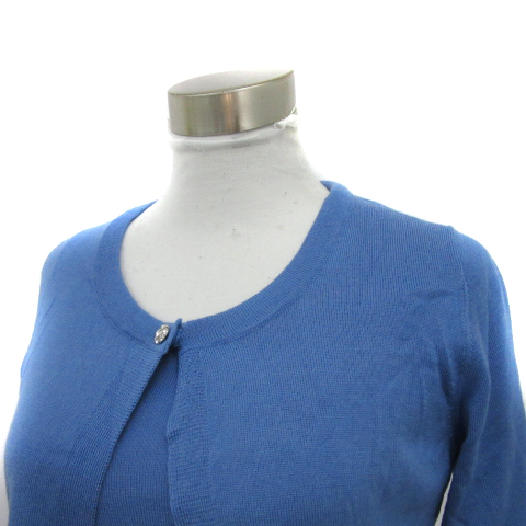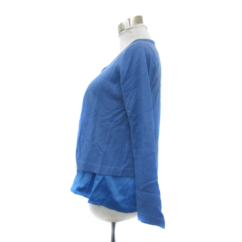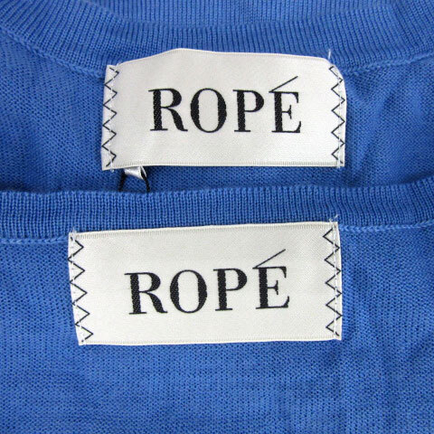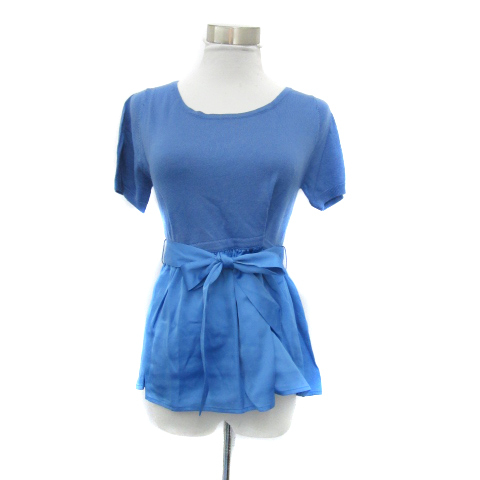 未使用品 ロペ アンサンブルニット カーディガン ミドル丈 前開き カットソー 半袖 ラウンドネック リボンベルト付き M 青 レディース
