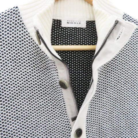 ムッシュニコル monsieur NICOLE カーディガン ミドル丈 スタンドカラー ジップアップ 48 M 黒 ブラック オフホワイト /YK33 メンズ