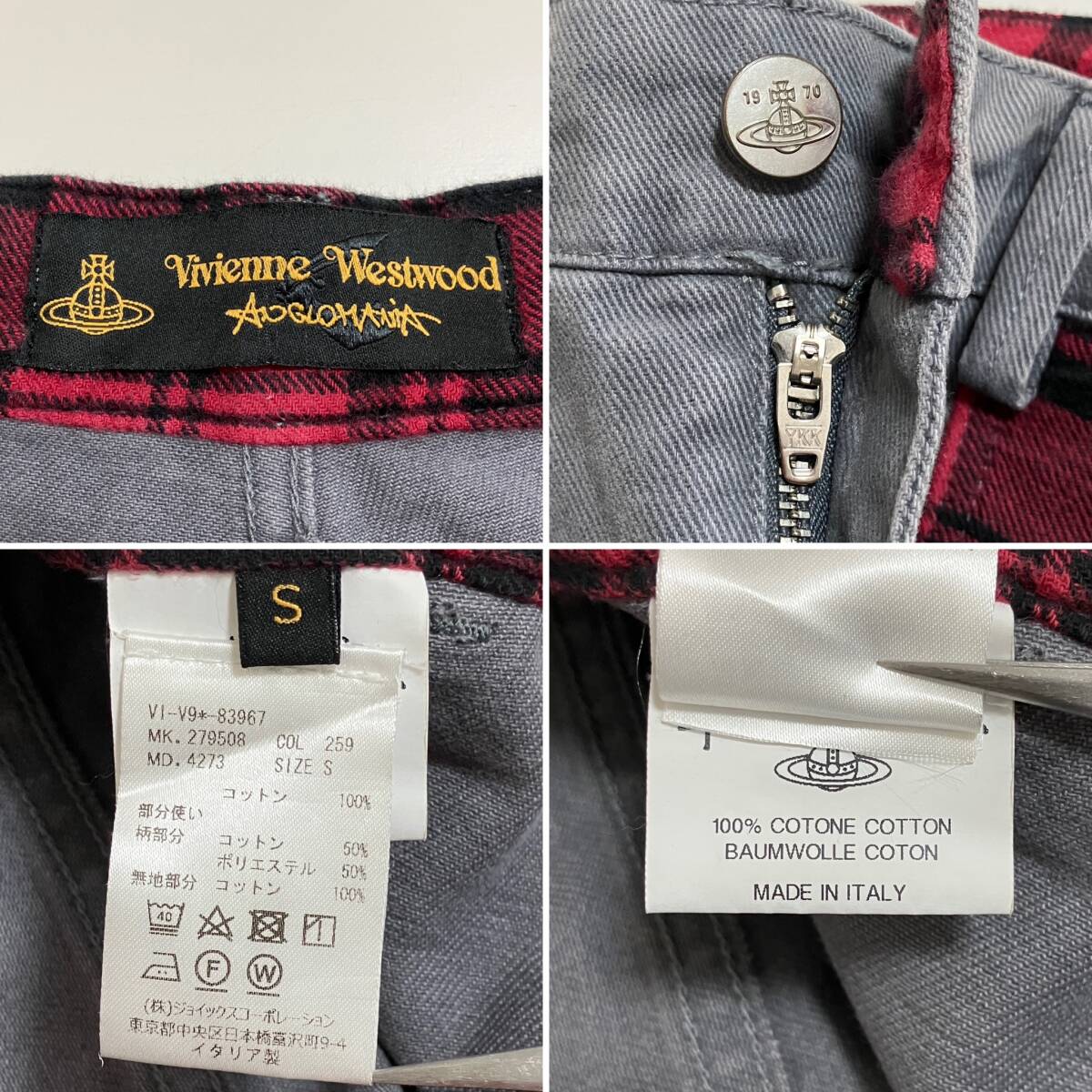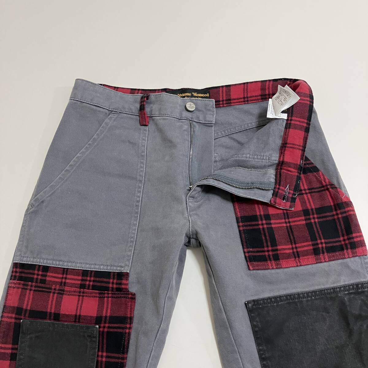 vivienne westwood ANGLOMANIA チェック パッチワーク カツラギ パンツ イタリア製 グレー Sサイズ アングロマニア archive 4120091
