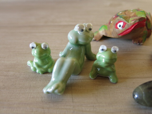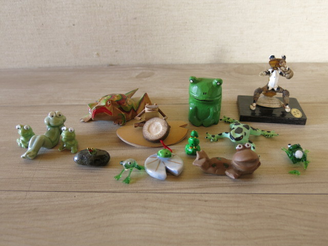 【現状渡し】まとめて カエル 置物 ガラス細工 木彫り オブジェ 工芸品 インテリア 小物 雑貨 蛙 かえる フロッグ 貝細工