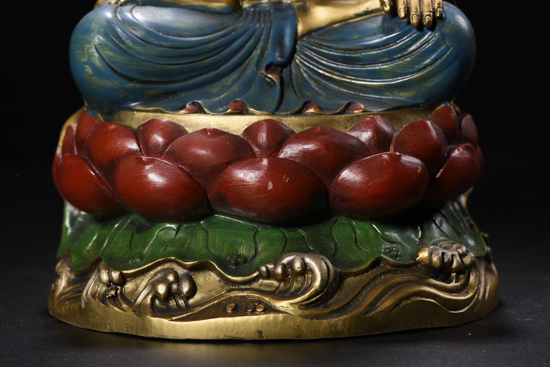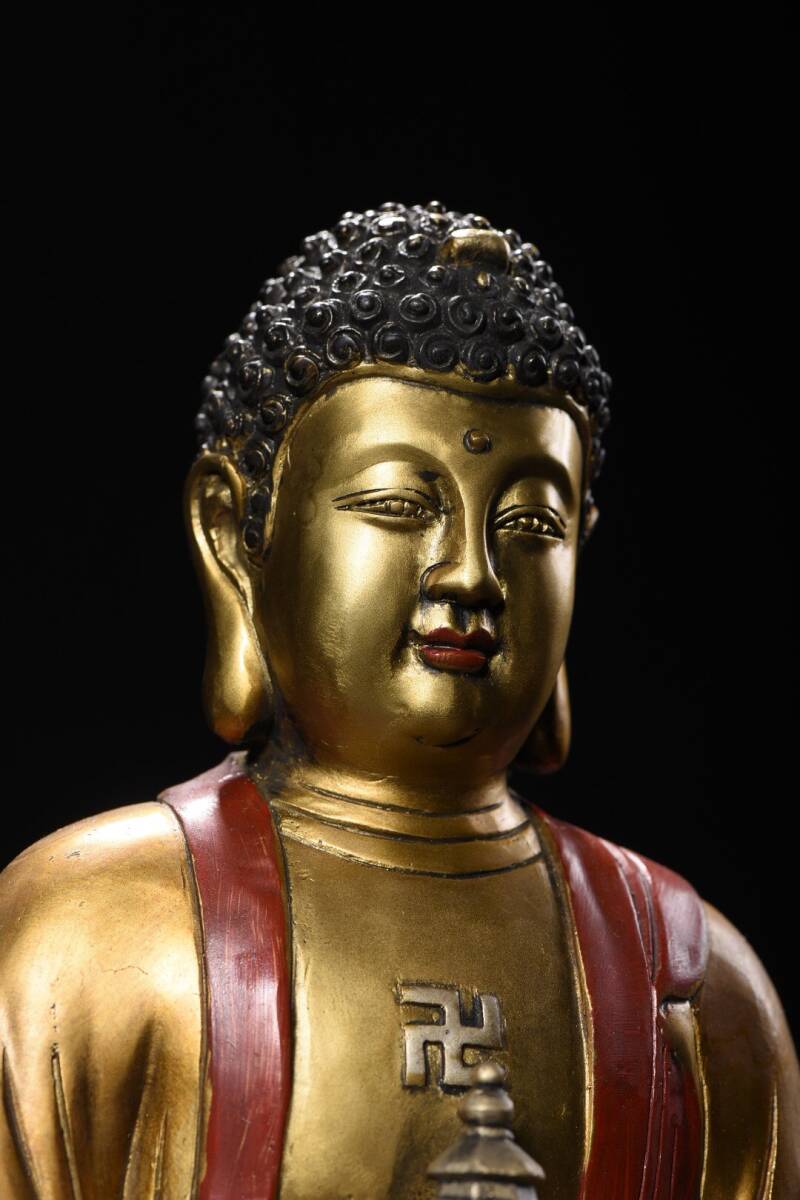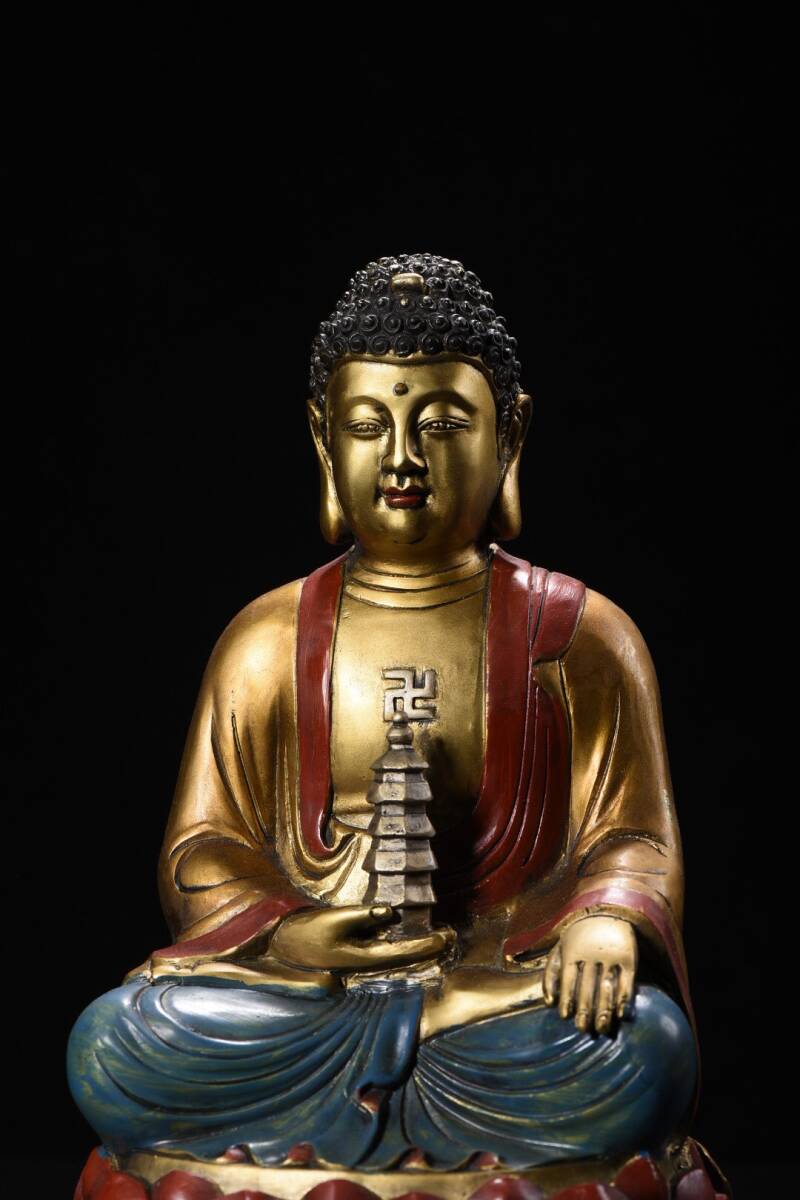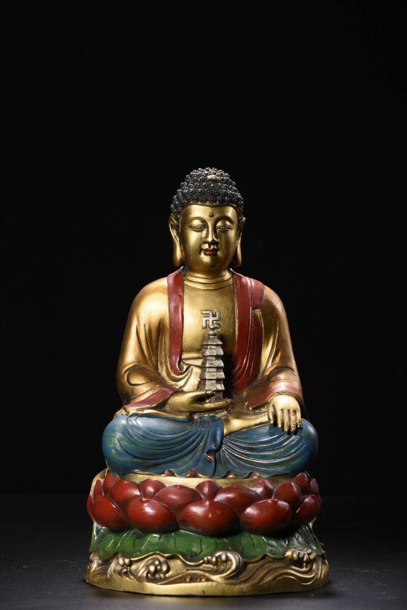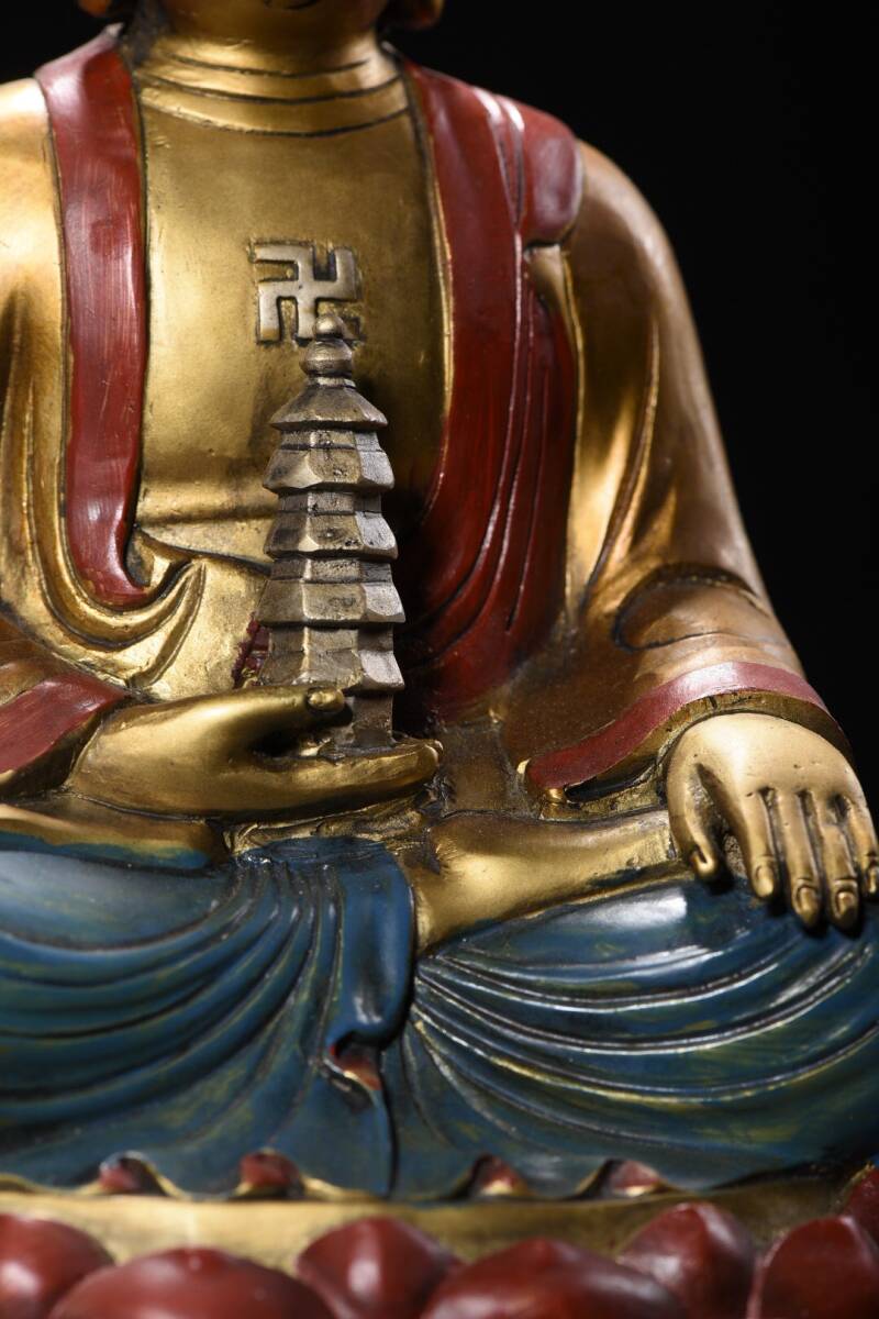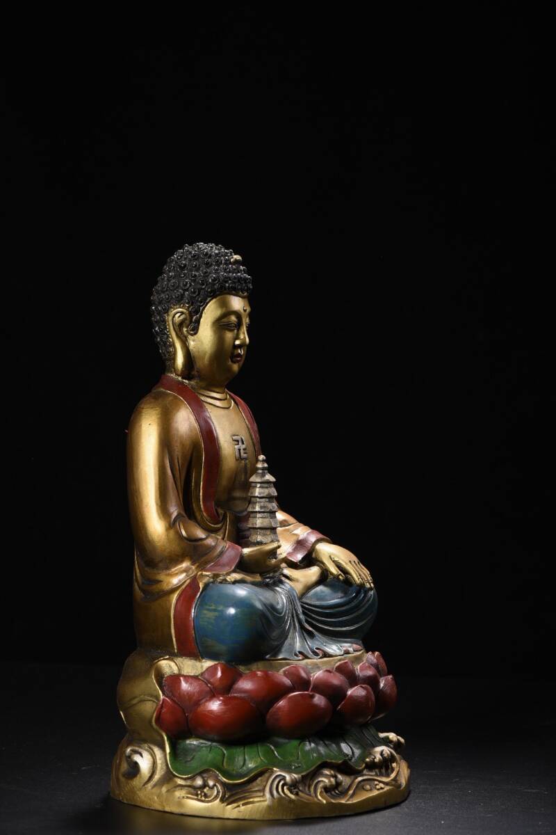 【超珍館蔵】銅製 金鍍 彩繪 大日如來像 置物 古賞物 古美術品 稀少珍蔵品