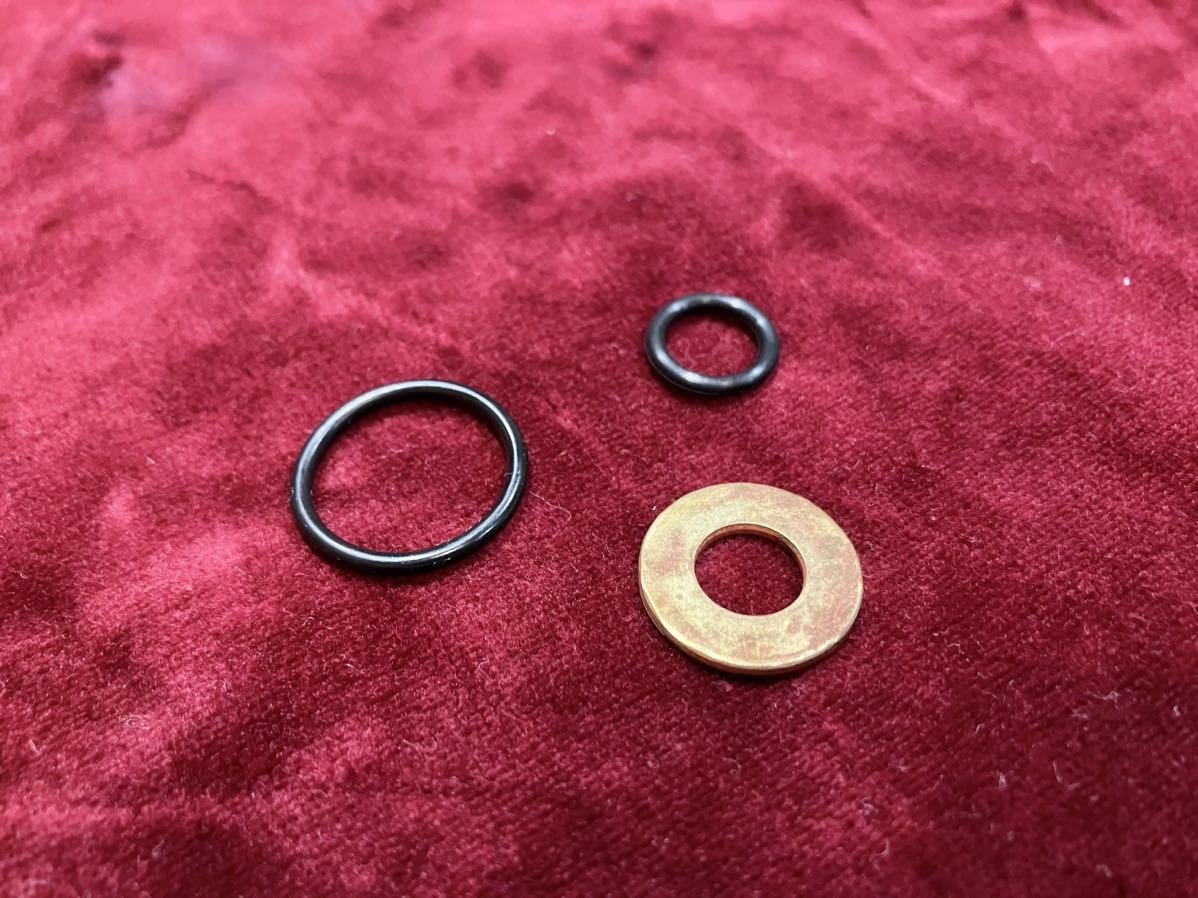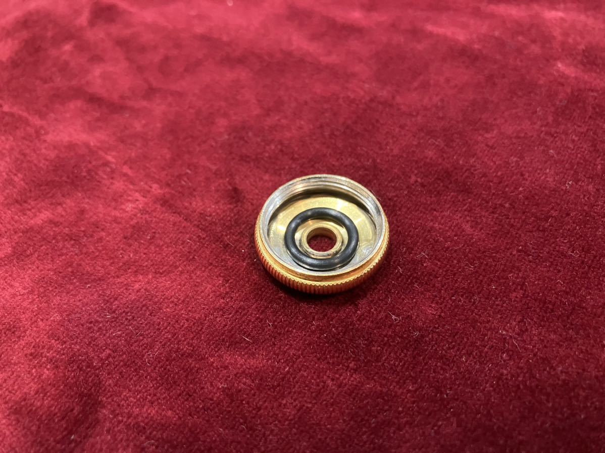 ピストンケーシングのバルブキャップ内に装着するブラス製のディスクとOリングのセットです。