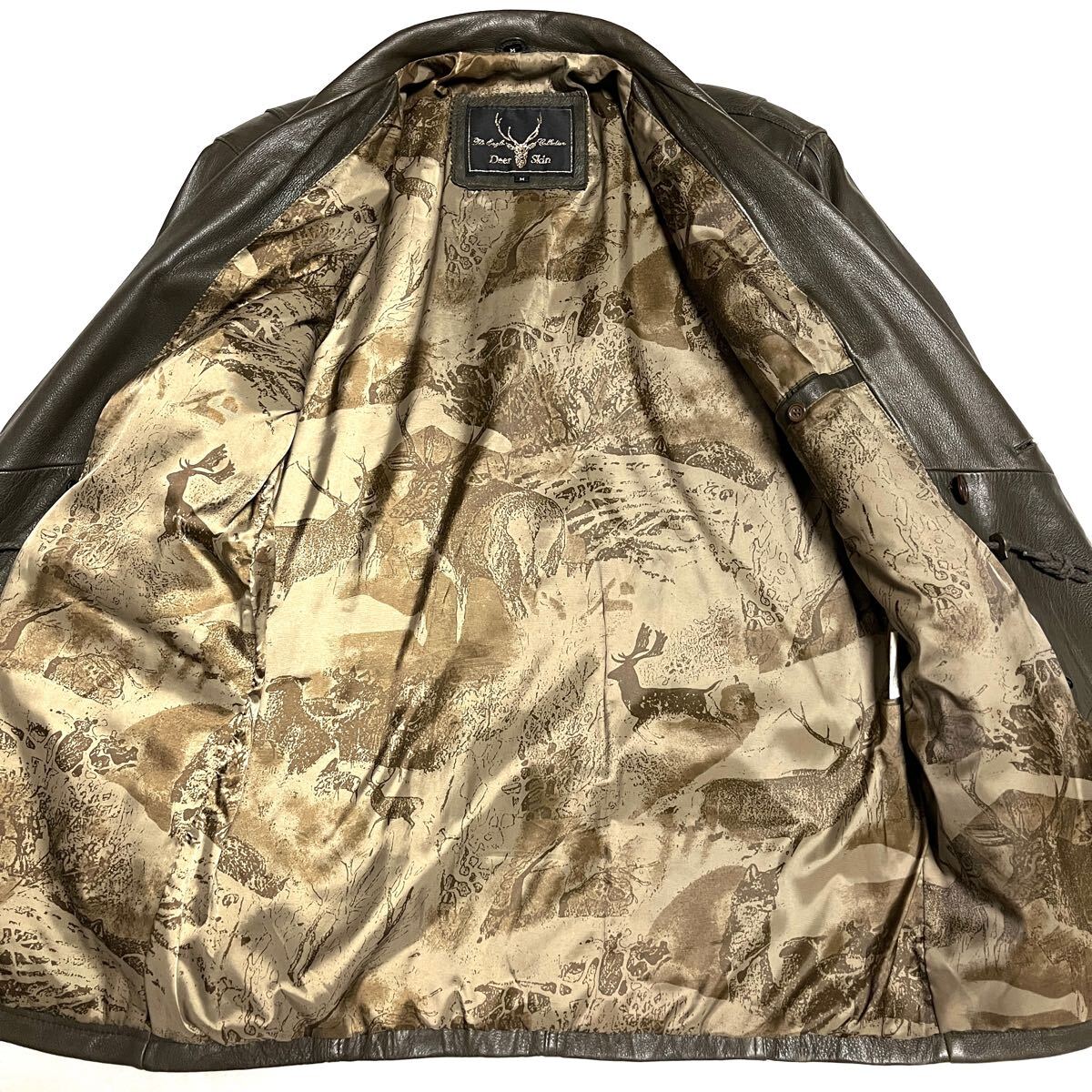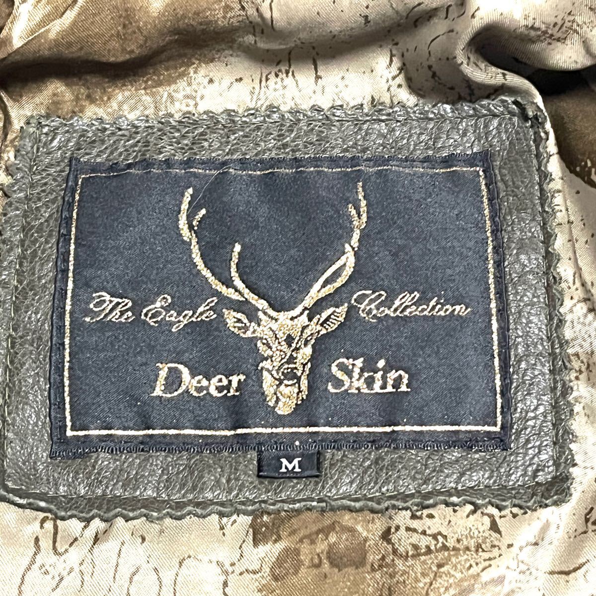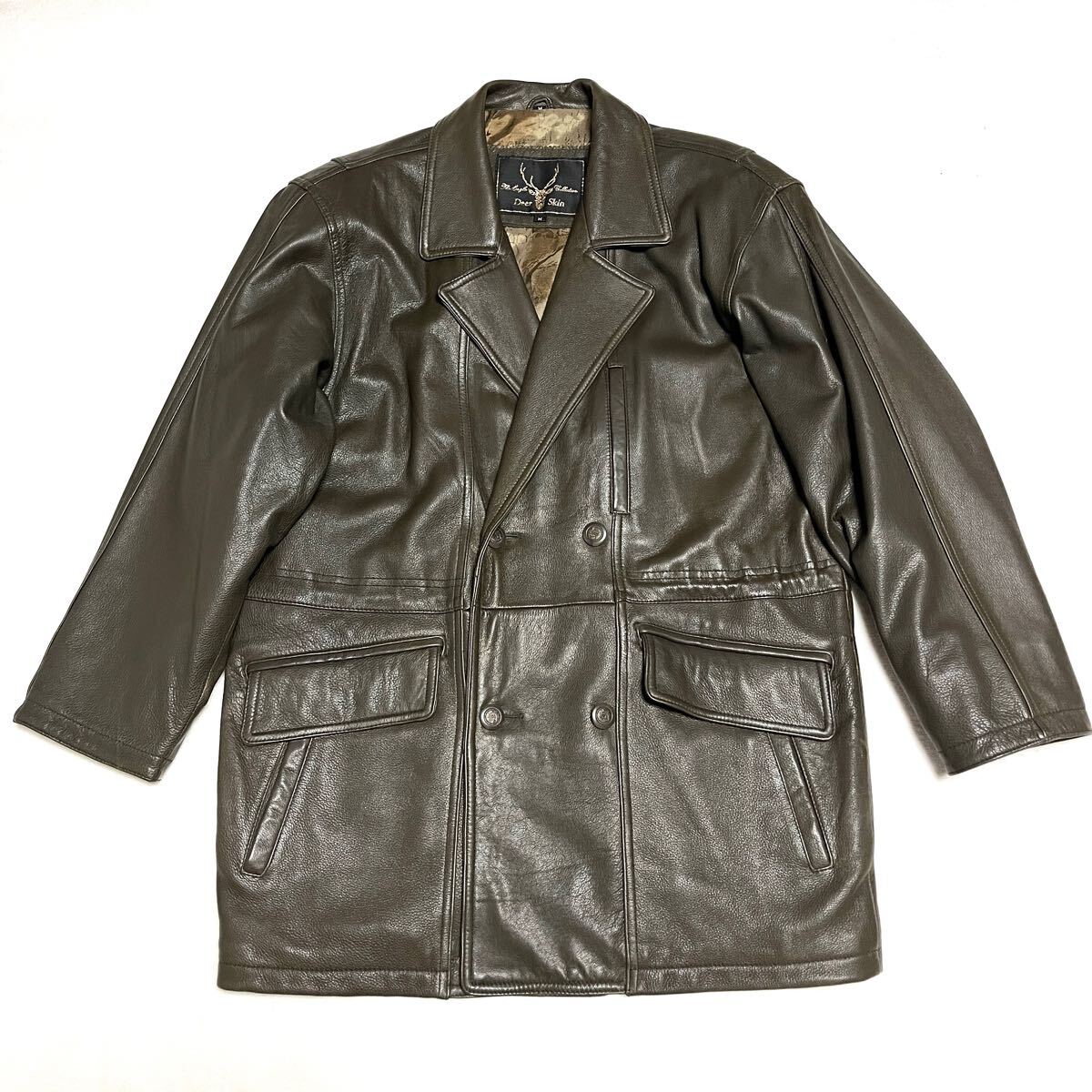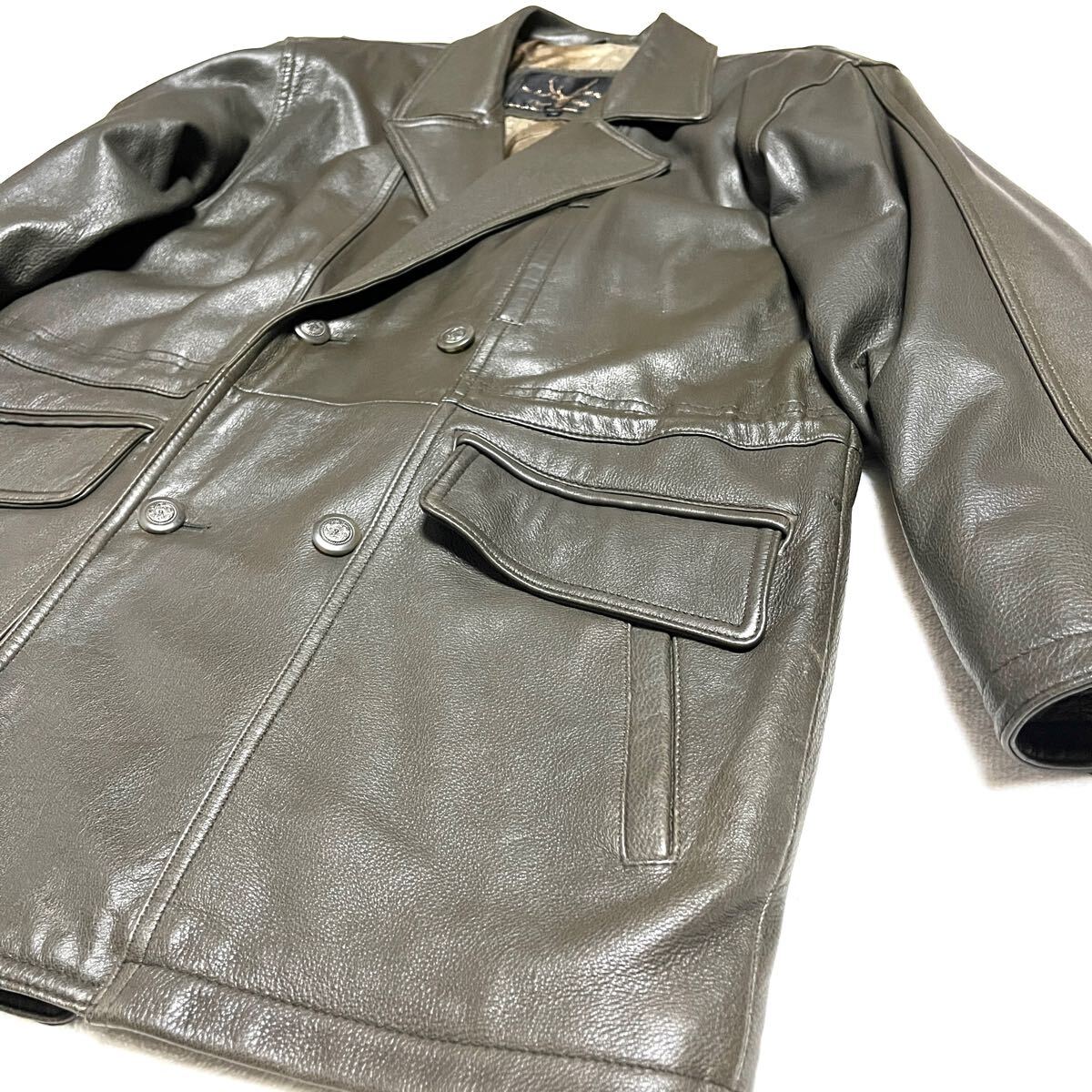 ★EAGLE collection イーグルコレクション★高級ディアスキン 鹿革★ダブルカーコート★Mサイズ★ローデングリーン 深緑★ヴィンテージ★メンズ★レザージャケット★本革★バイク バイカー ライダース★