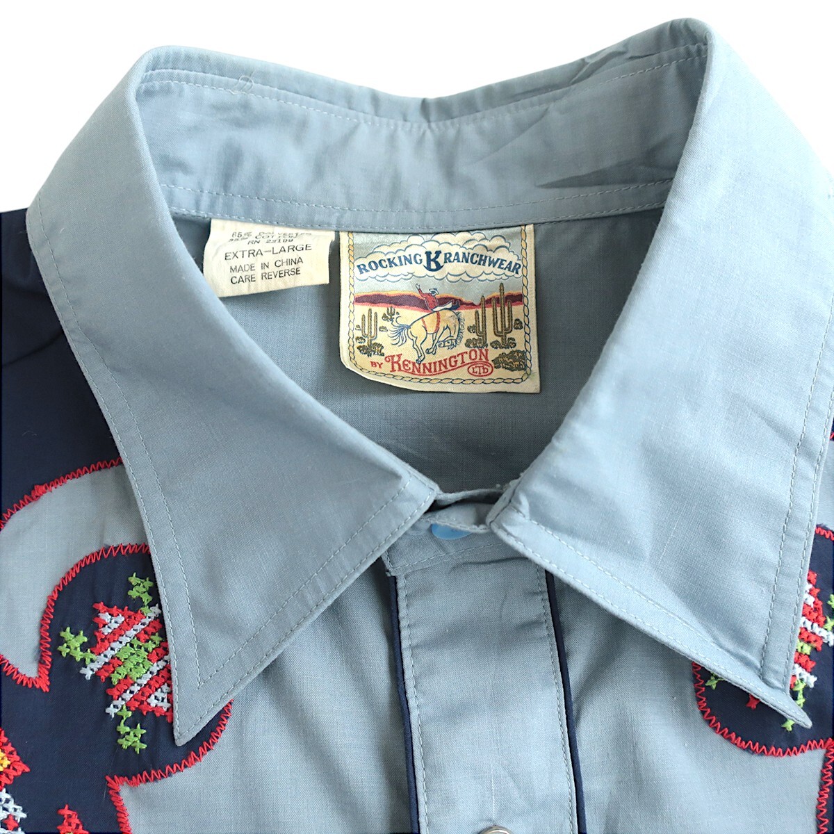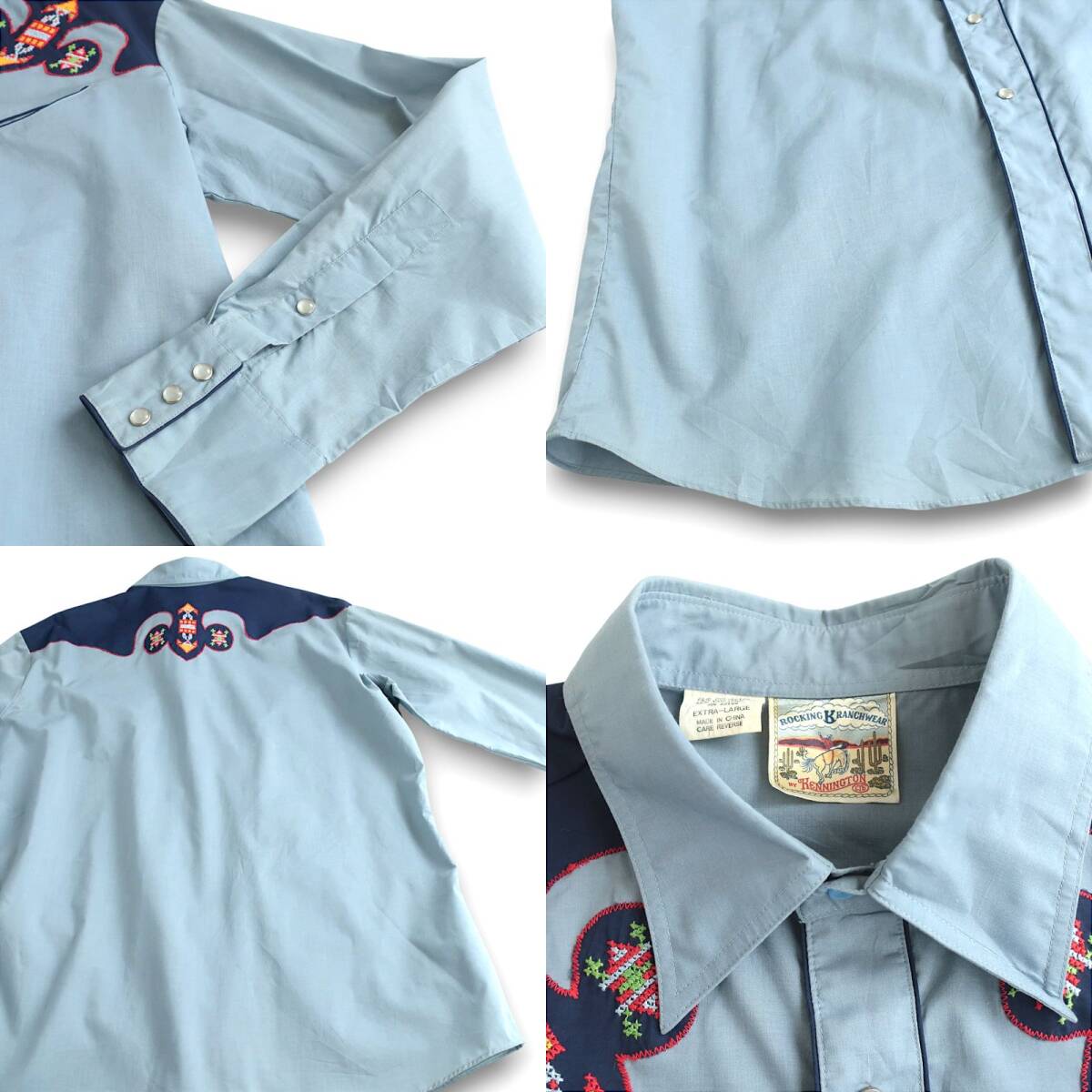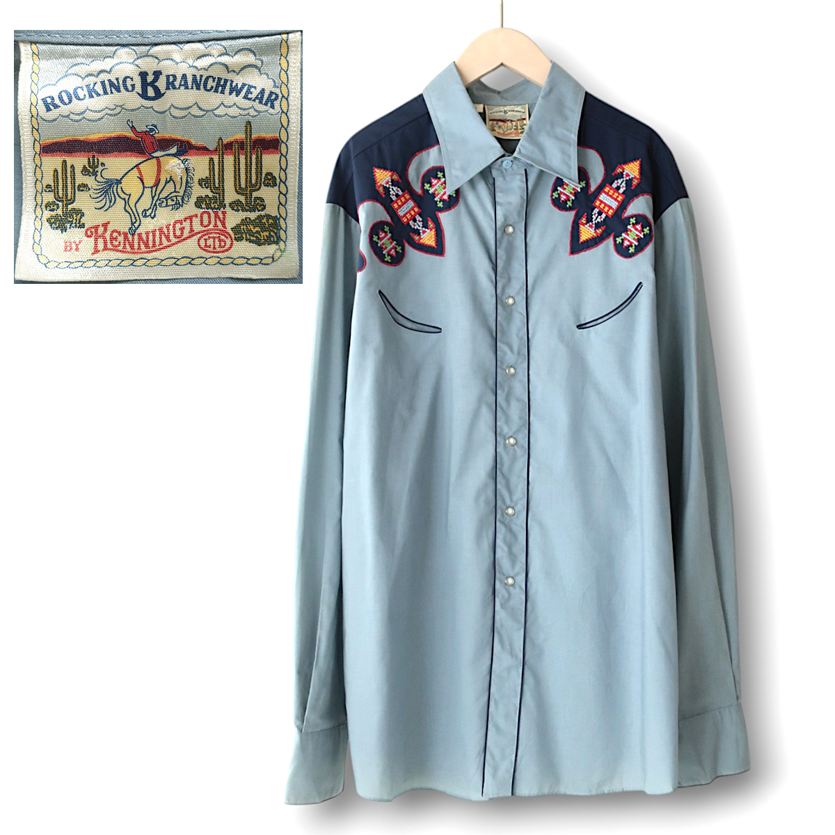 美品80s KENNINGTON ハンドメイド刺繍 ウエスタンシャツ サックスブルー(XL) ROCKING RANCHWEAR