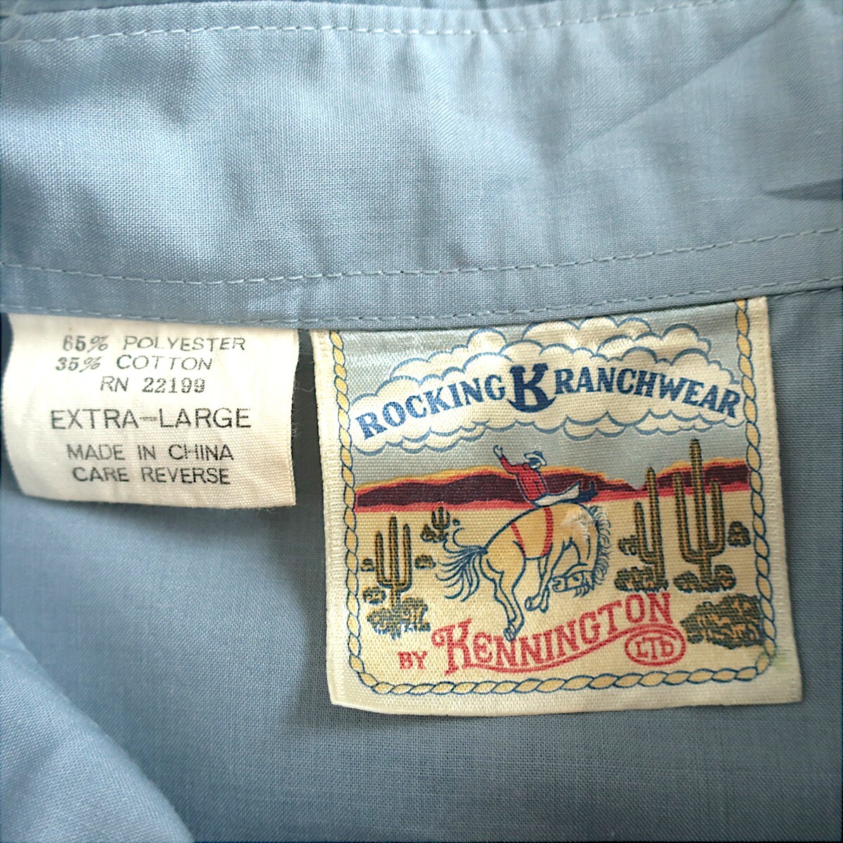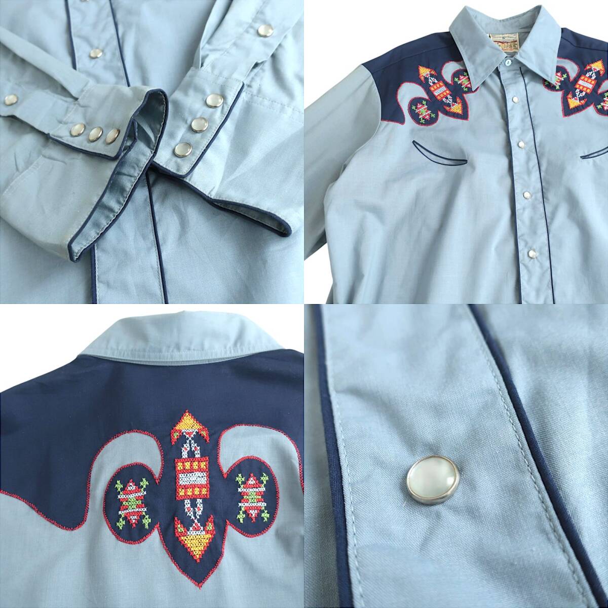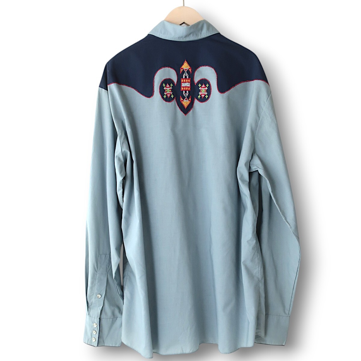 美品80s KENNINGTON ハンドメイド刺繍 ウエスタンシャツ サックスブルー(XL) ROCKING RANCHWEAR