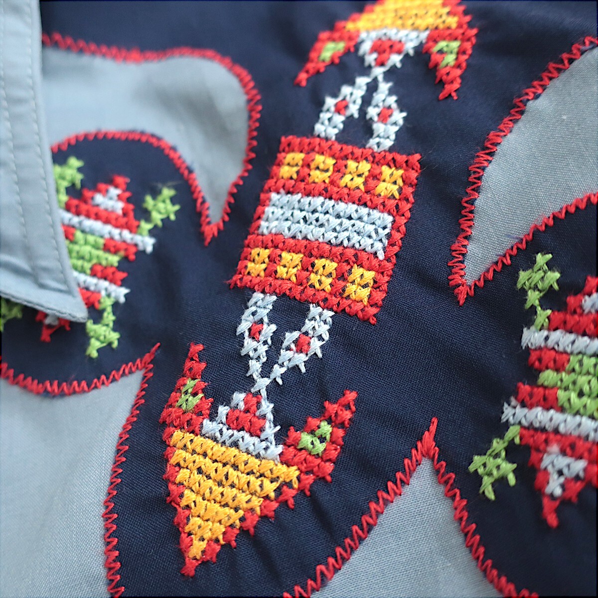 ヴィンテージ ケニントン 珍しいハンドメイド風刺繍ウエスタン!