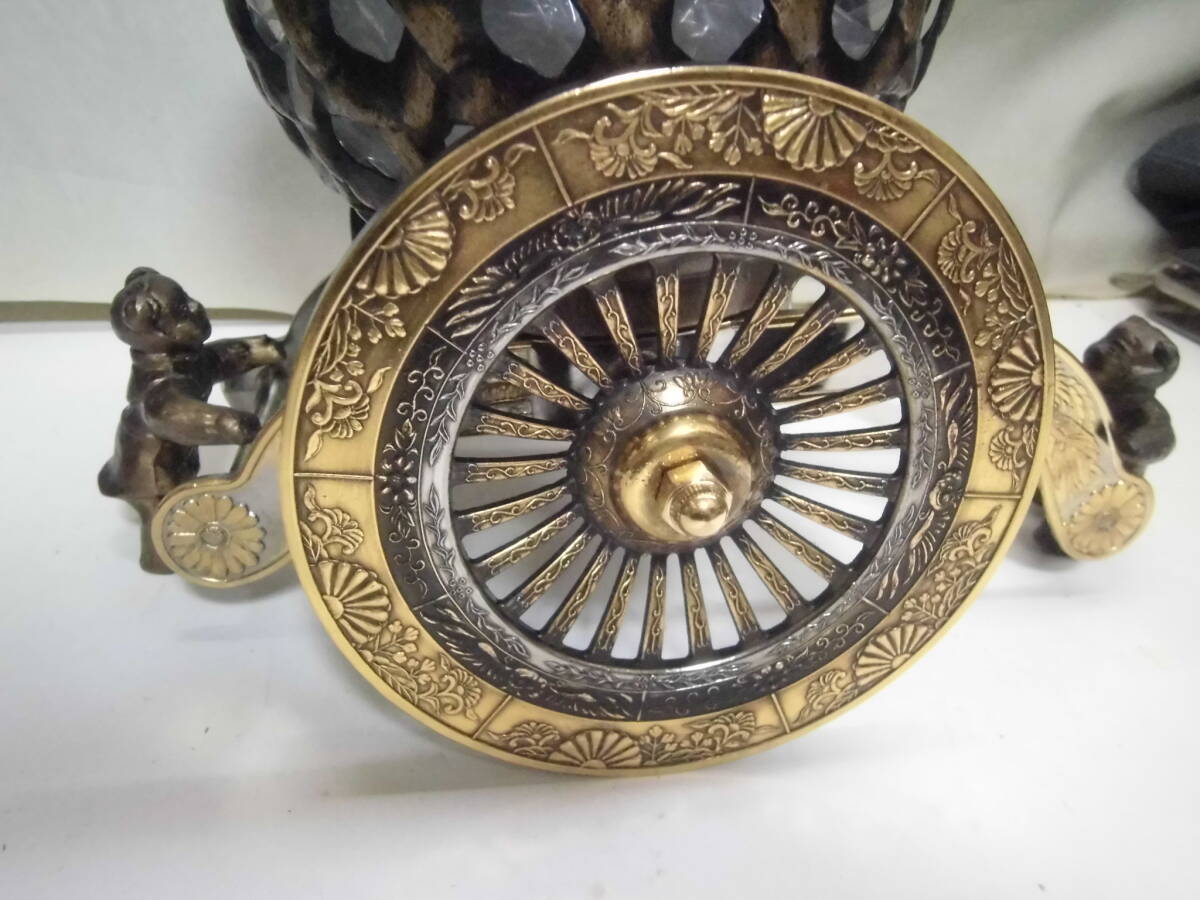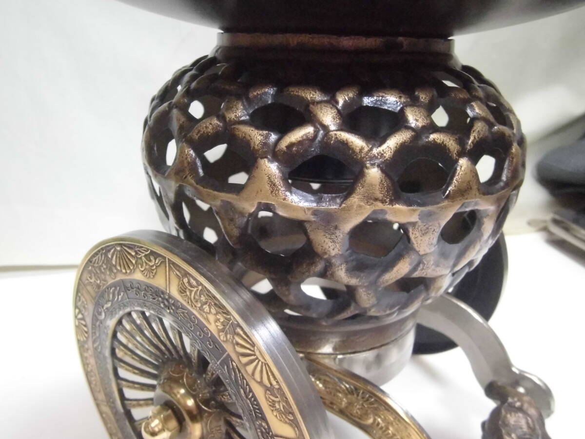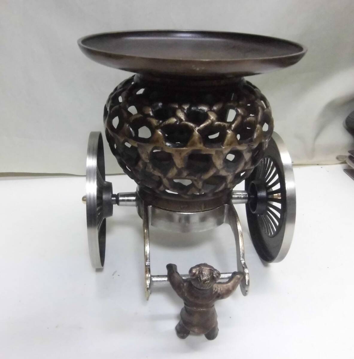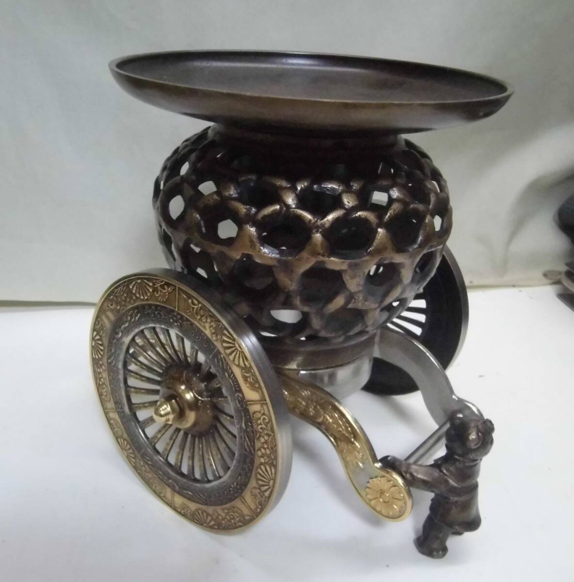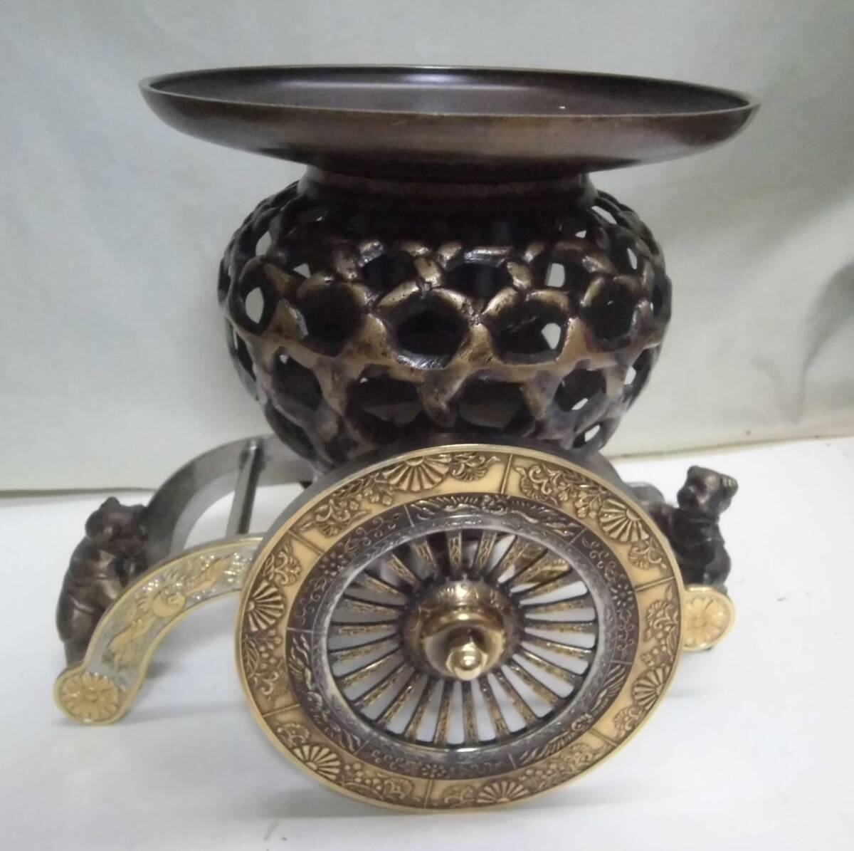 善祐謹製 鋳銅 金彩 新御所車 薄端 花入w260mm xd210mm xh250mm