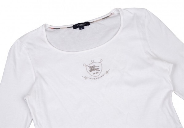バーバリーロンドンBURBERRY LONDON コットンポイント刺繍7分袖カットソー 白2 |