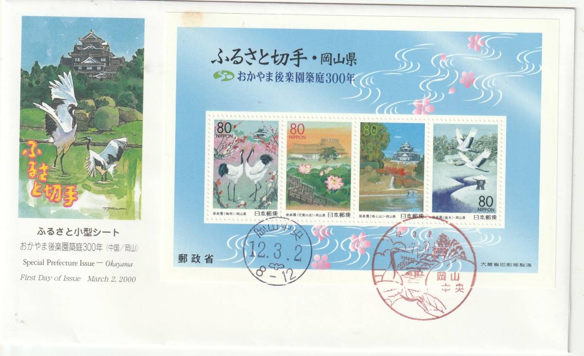 FDC 2000年 ふるさと切手  おかやま後楽園築庭300年 80円  絵寺田敬