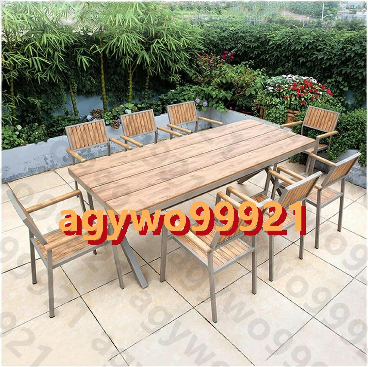 WZUOPG パティオダイニングセット 9点 パティオテーブルと椅子 カトラリー アルミフレーム プラスチック木製テーブルトップ 全天候レジャーガーデンテーブルと椅子 (サイズ:180x90x72cm)
