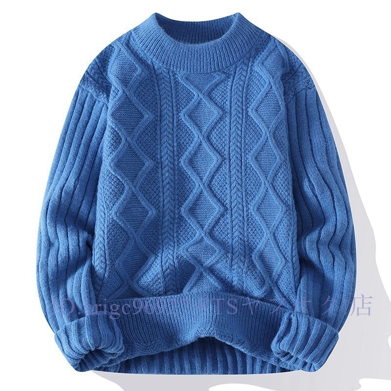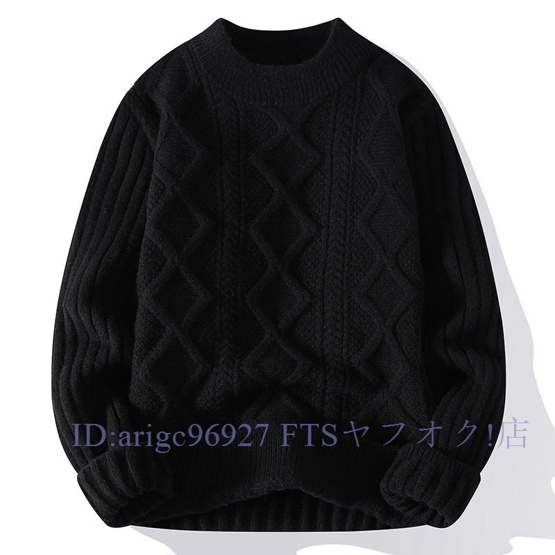 ★新品カシミヤウール混 ケーブル編み ラウンドネック トップス メンズ 感 ニットセーター プルオーバー 秋冬 日常 M~3XL4色
