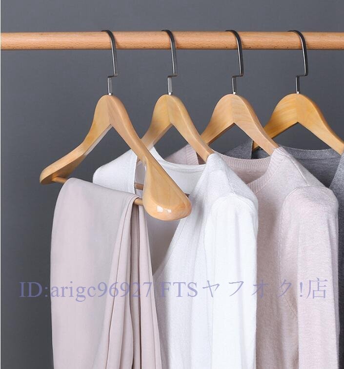 ★新品ハンガー コート用 スーツ 木製ハンガーセット 手作 洋服 天然高級木 (ナチュラル/6本)