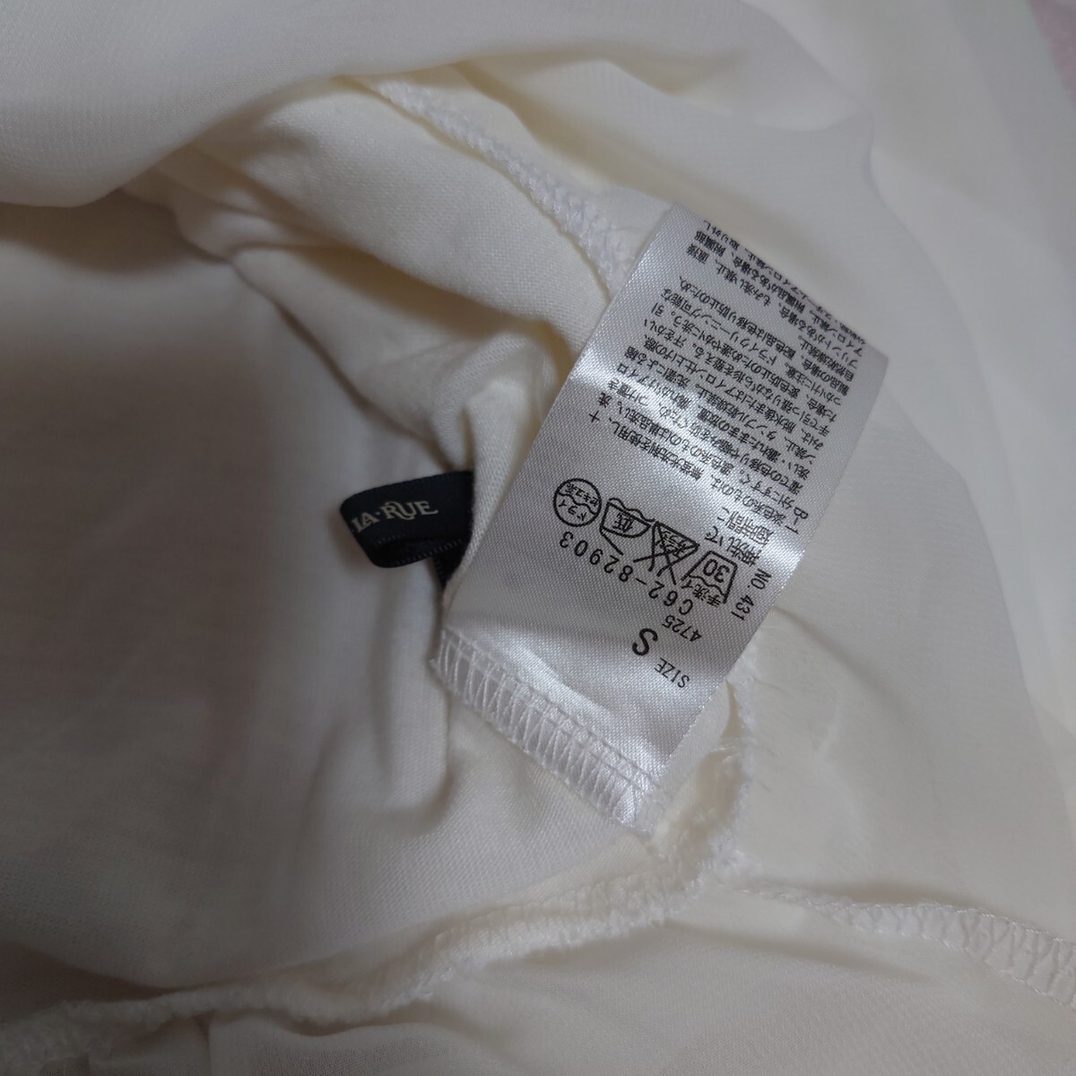 レース素材とビジューが特徴のSサイズ五分袖ブラウス。