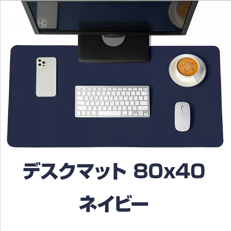 デスクマット パソコンマット 大判 事務 合皮 PUレザー ネイビー 80cm × 40cm 新品未使用 【ネイビー】