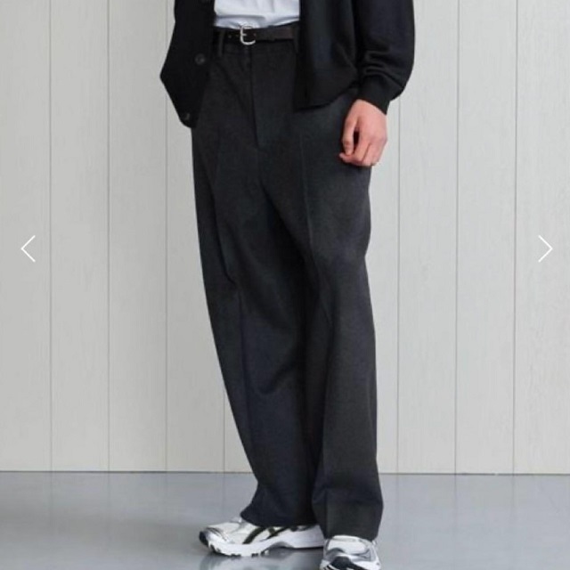 H BEAUTY&YOUTH エイチ 23AW ウールミックスフラノワイドテーパードパンツ 1214-177-8997 L チャコールグレー カシミヤ スラックス