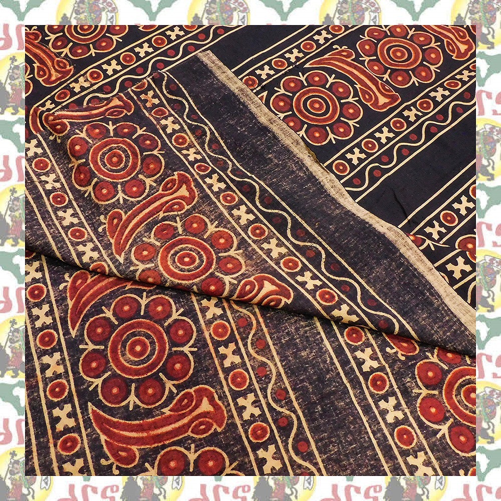 【SALE/180cm x 110cm/2ヤード】ハンドブロックプリント布 HBP-04 | 手作りデザイン、インディゴ染、エコ素材、伝統技法、オリジナル模様