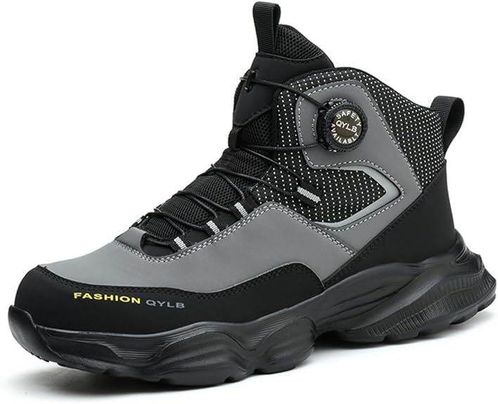 安全靴 ハイカット ダイヤル式 防水 作業靴靴 革 軽量 踏み抜き防止 鋼先芯入り 耐滑 耐摩耗 グレー サイズ:26cm