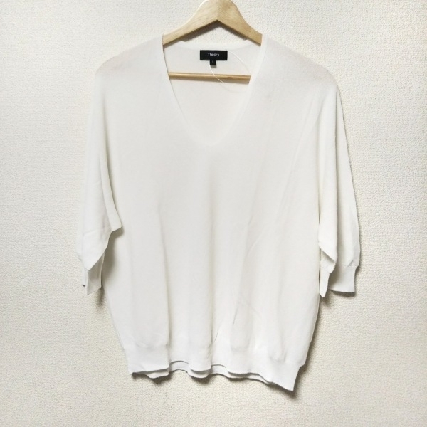 セオリー theory 七分袖セーター/ニット サイズL - 白 レディース Vネック トップス