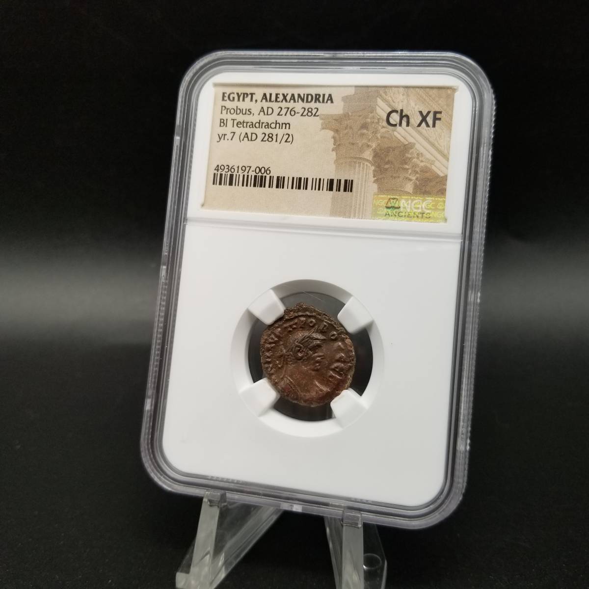 【レア!エジプト アレクサンドリア 皇帝プロバス】テトラドラクマ銀貨 古代ローマ AD276-282年 NGC鑑定 CH XF アンティークコイン