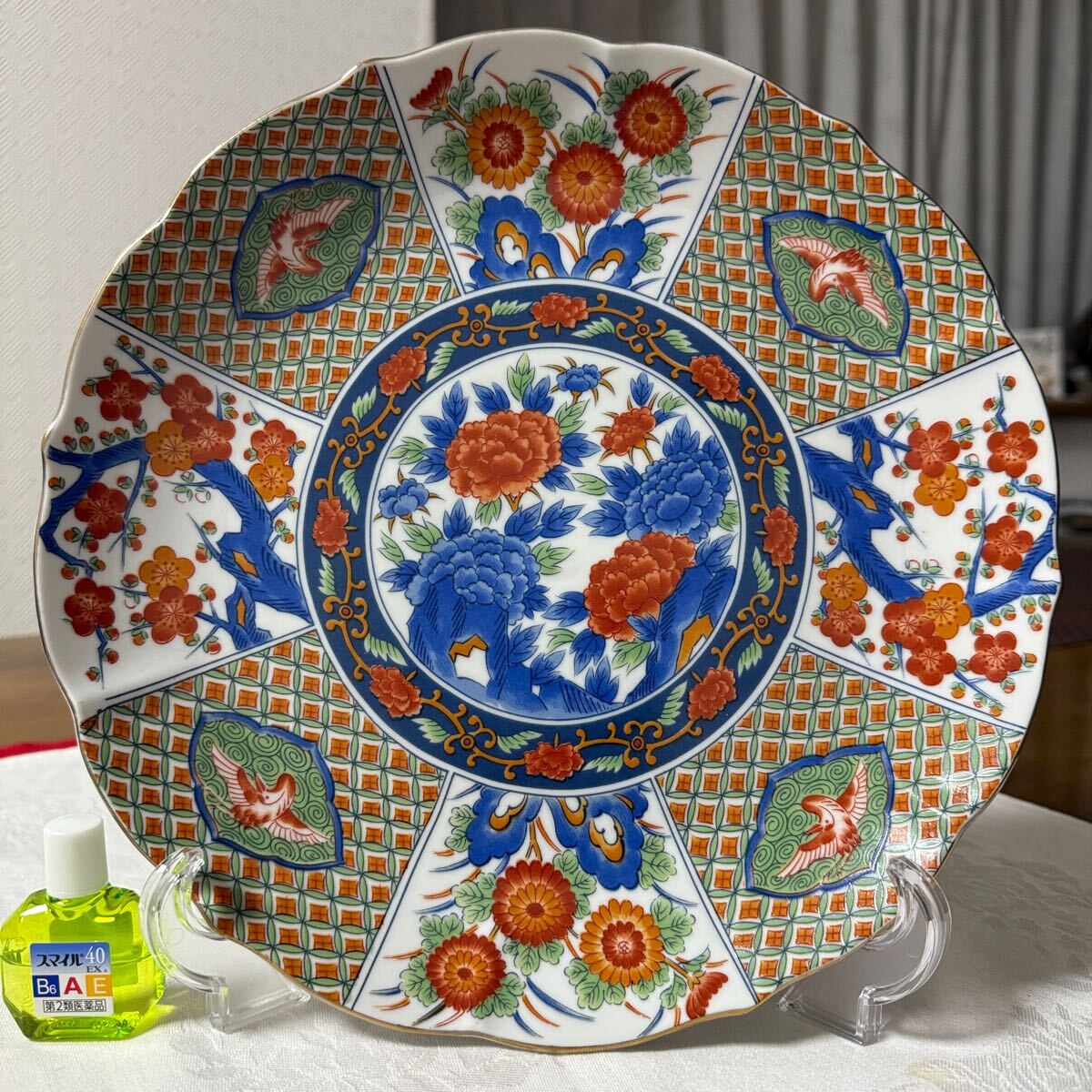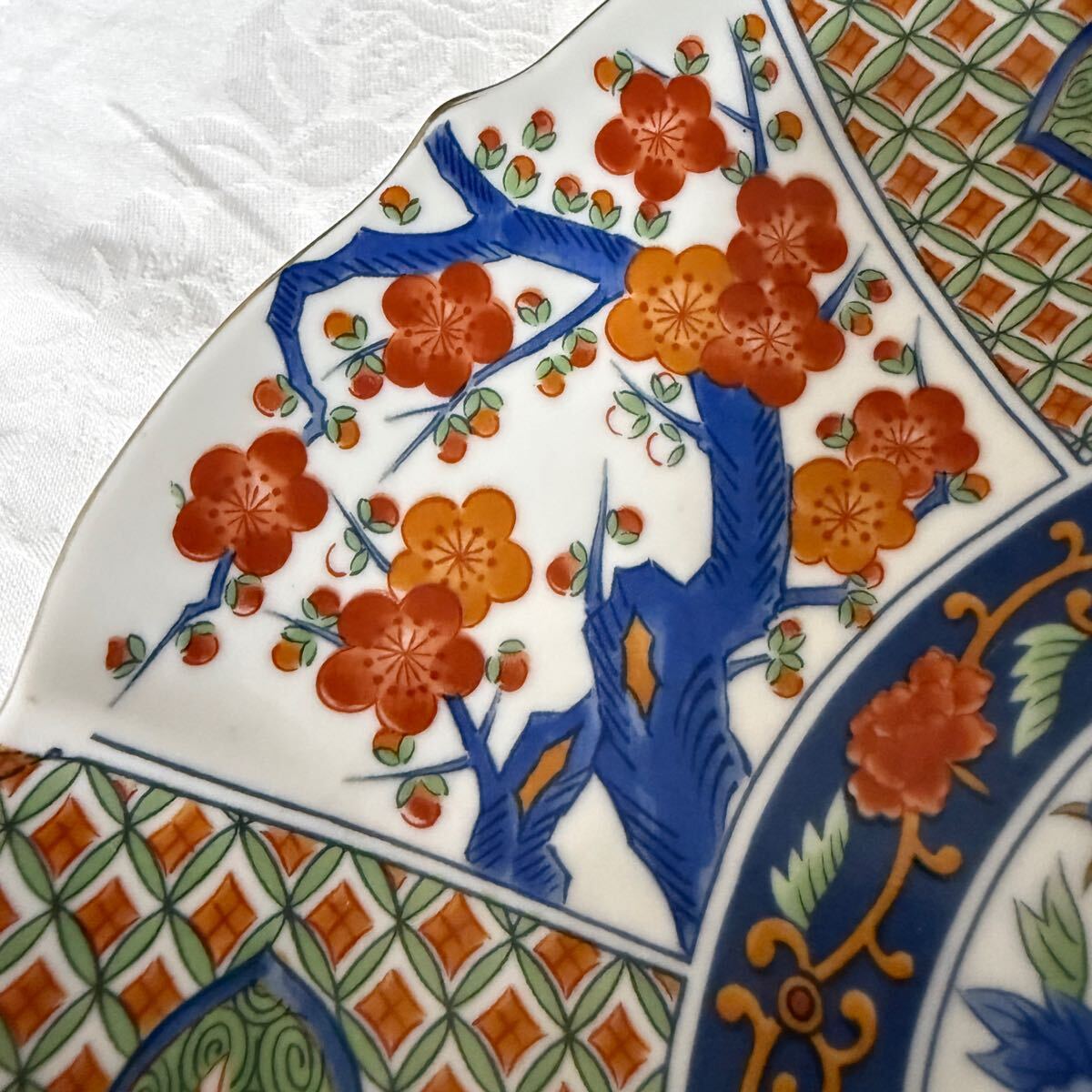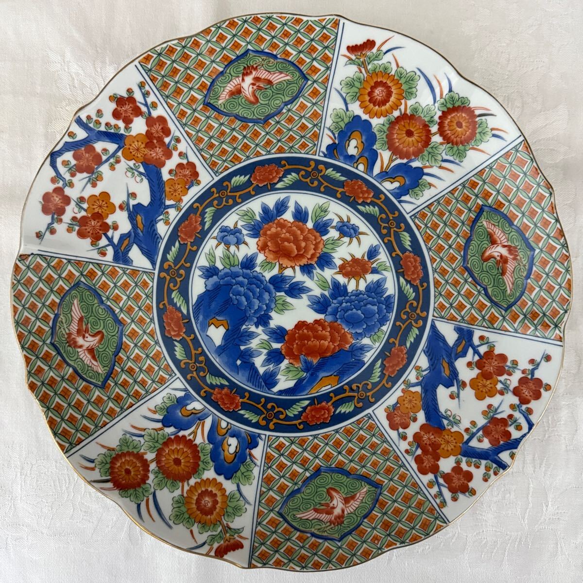普段使いにも良し。梅、菊、鶴、牡丹等、豪華賢覧な柄なので飾り皿としても
