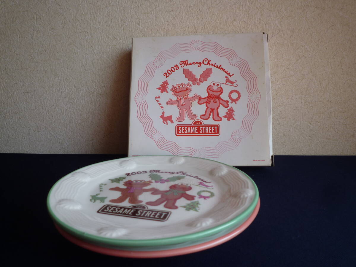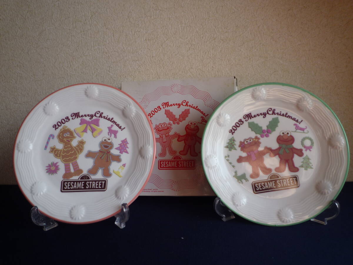 ★セサミストリート 皿 ペアセット 2003 Merry Christmas! ミスタードーナツ★