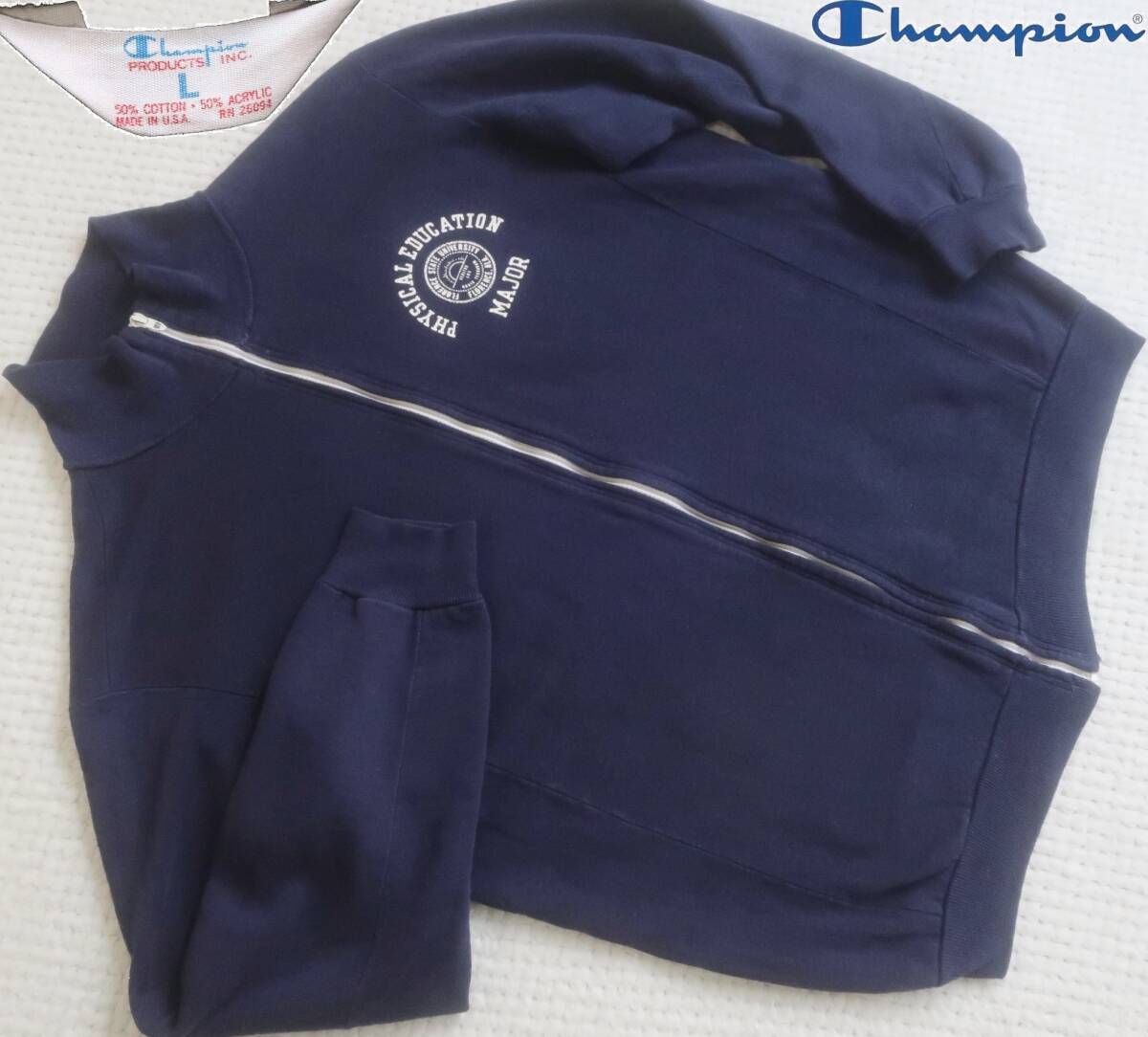 古着★チャンピオン CHAMPION★1967~71年代★プロダクツタグ★三角タグ★ネイビー ジャージ★ジップアップ スウェット 紺 L★849