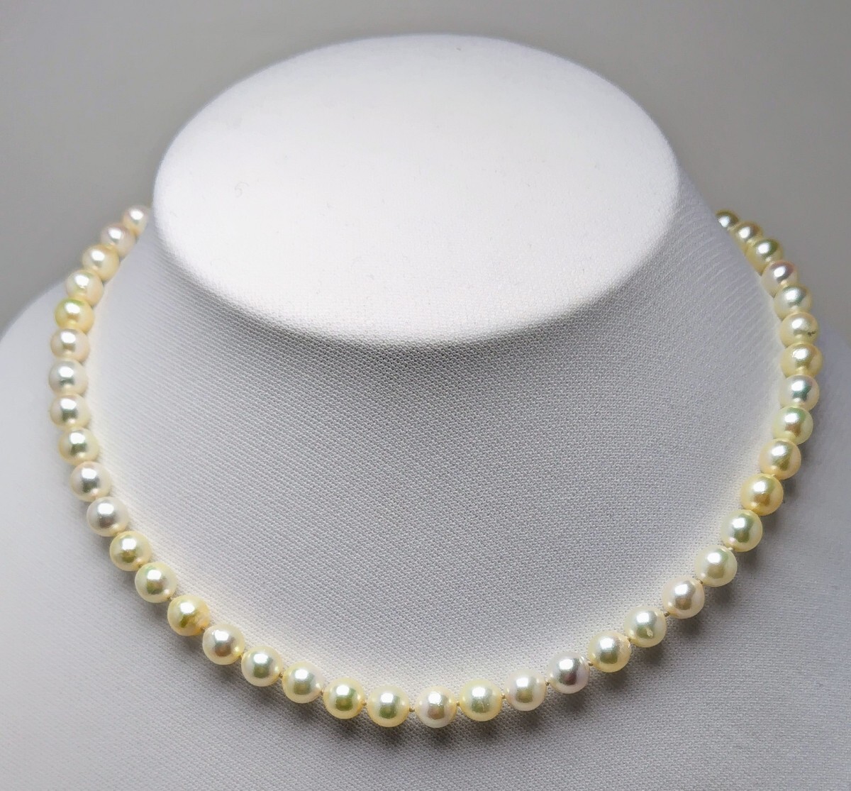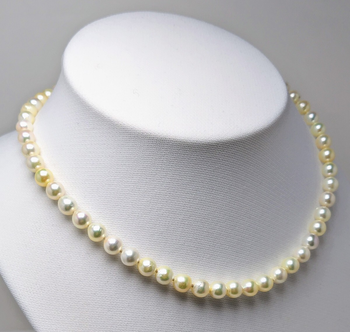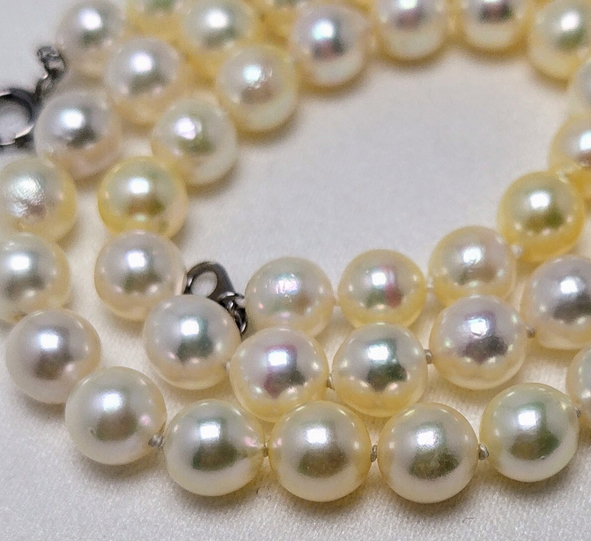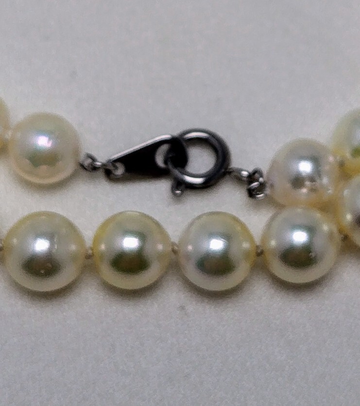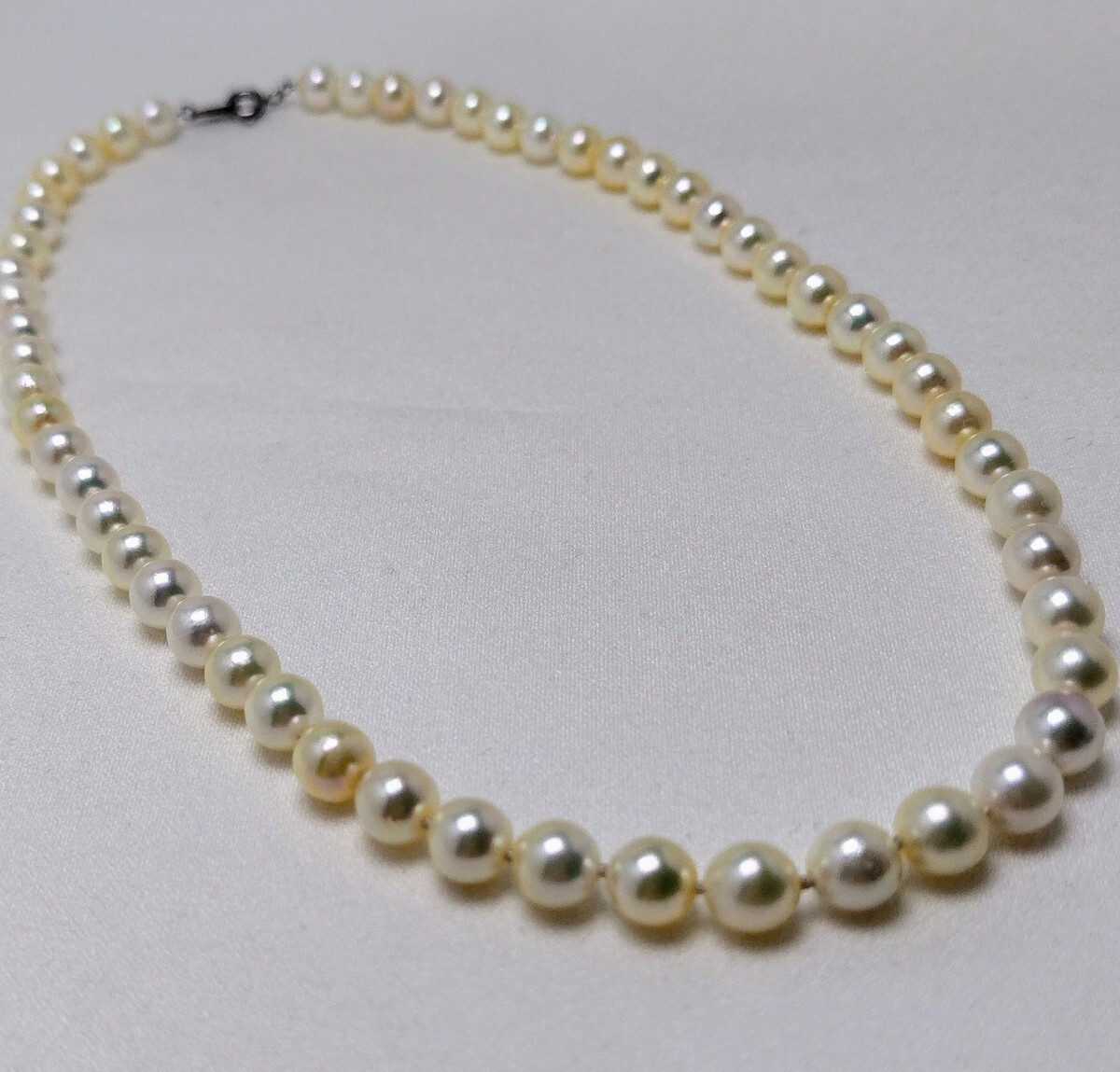 真珠専科 テリ、巻き最高 あこや真珠 7.0㎜-6.5㎜ ネックレス ステンレス金具