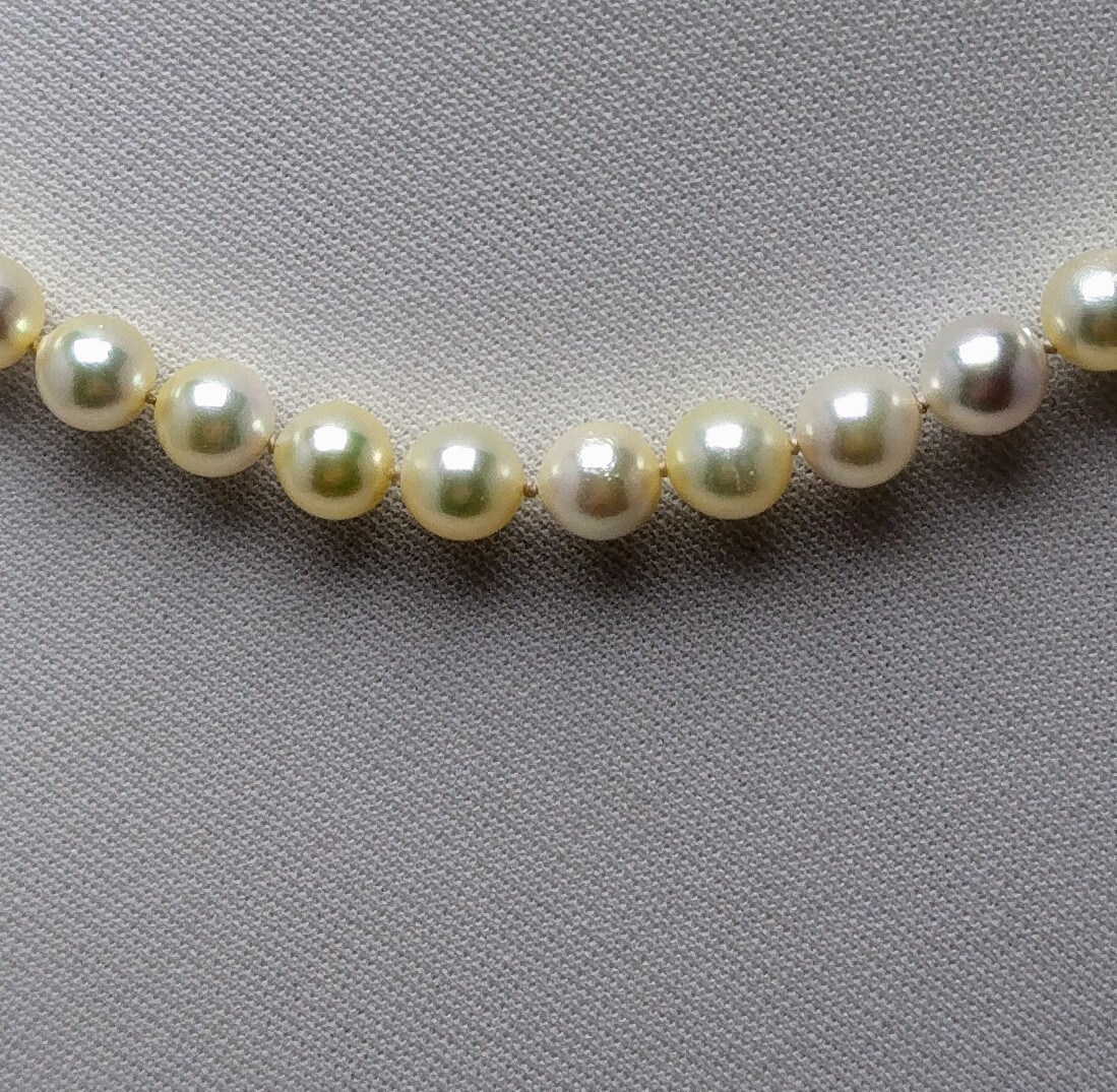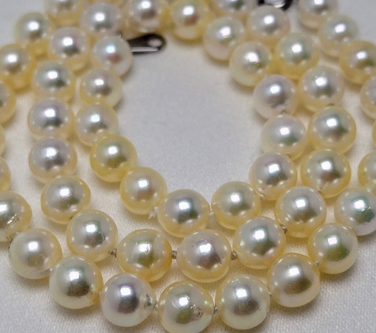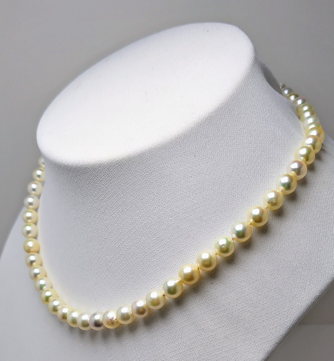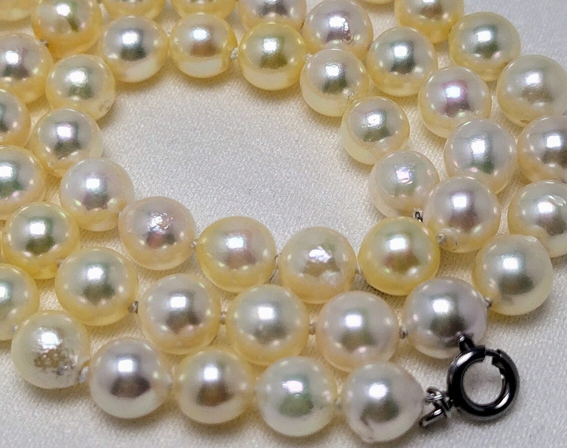 真珠専科 テリ、巻き最高 あこや真珠 7.0㎜-6.5㎜ ネックレス ステンレス金具