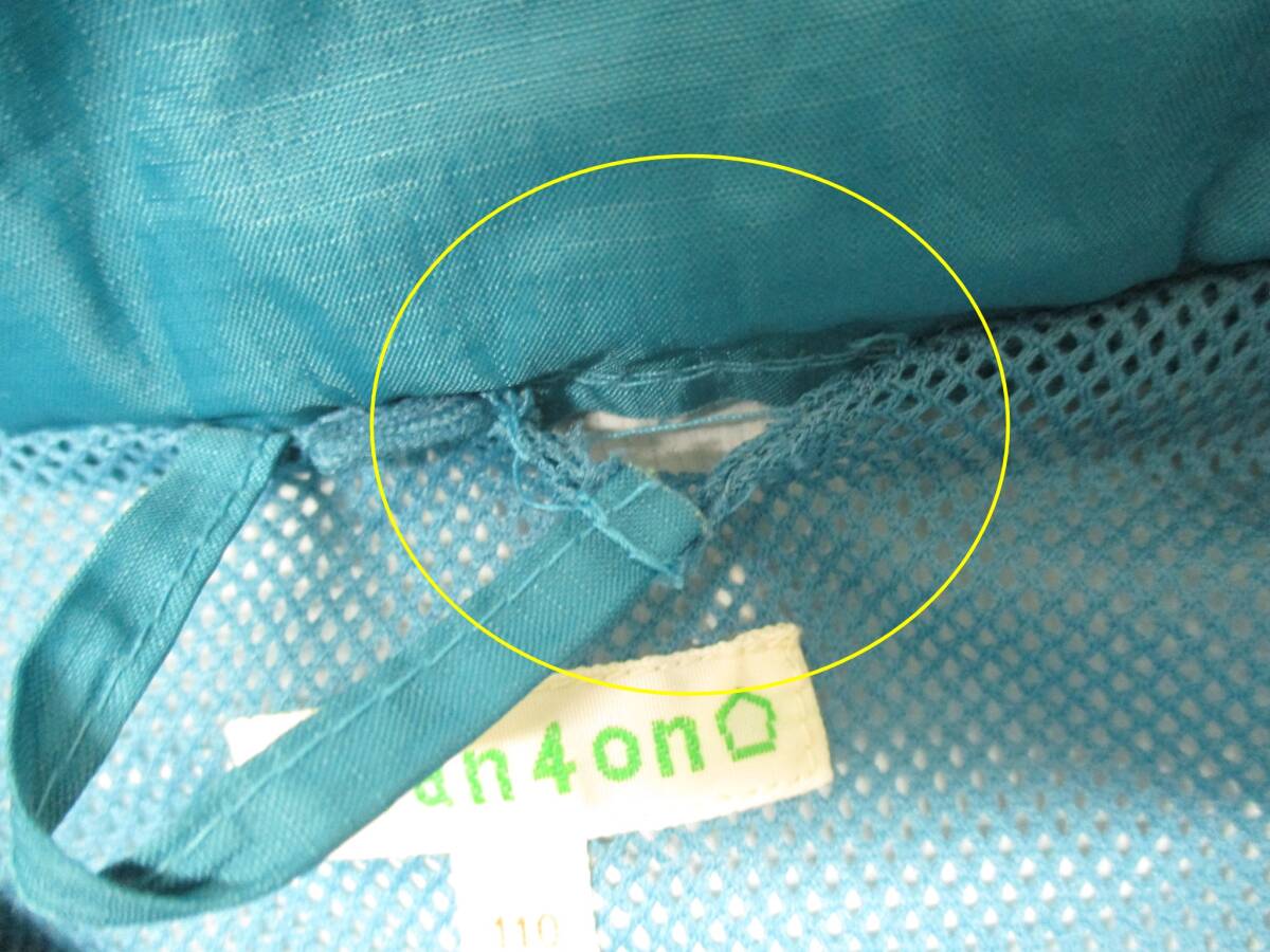 ・ブランドタグ右上の裏生地が破れています(画像9)