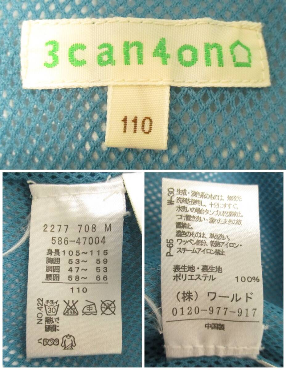 ★1302【難有 送料無料】3can4on サンカンシオン キッズ 110 子供 二重ファスナー ジャンパー ウインドブレーカー レインパーカー 青緑