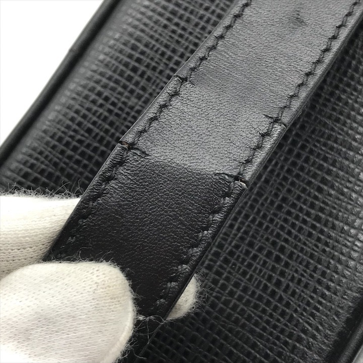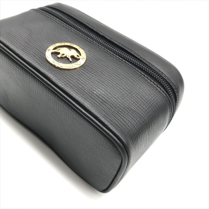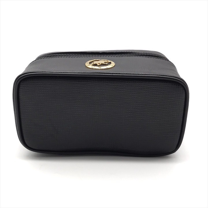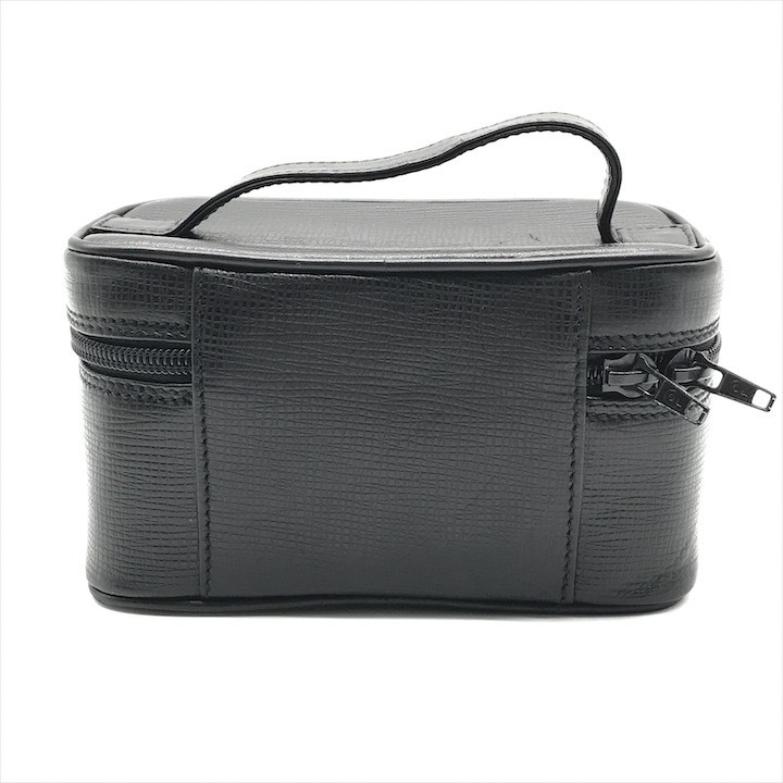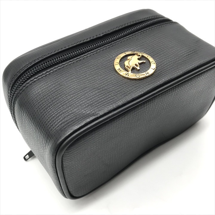 良品 HUNTING WORLD ハンティングワールド ミニ ハンド バッグ バニティ メイク ポーチ レザー ブラック k5117 | |||