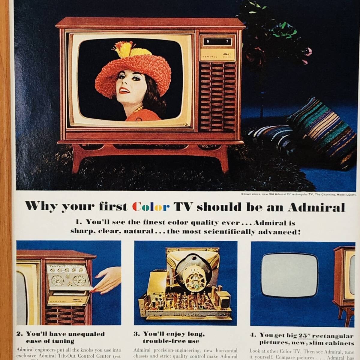 『 アドミラル カラーテレビ 』ビンテージ 広告 60年代 フレーム 付 ポスター 当時物 額付 LIFE 雑誌 アンティーク オリジナル