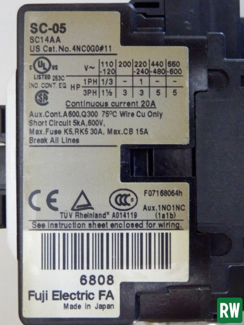 | 【1個】 電磁接触器 富士電機 SC-05 AC200V 400g 75×53×80mm 補助接点1a1b 電子部品 パーツ 機械部品 |