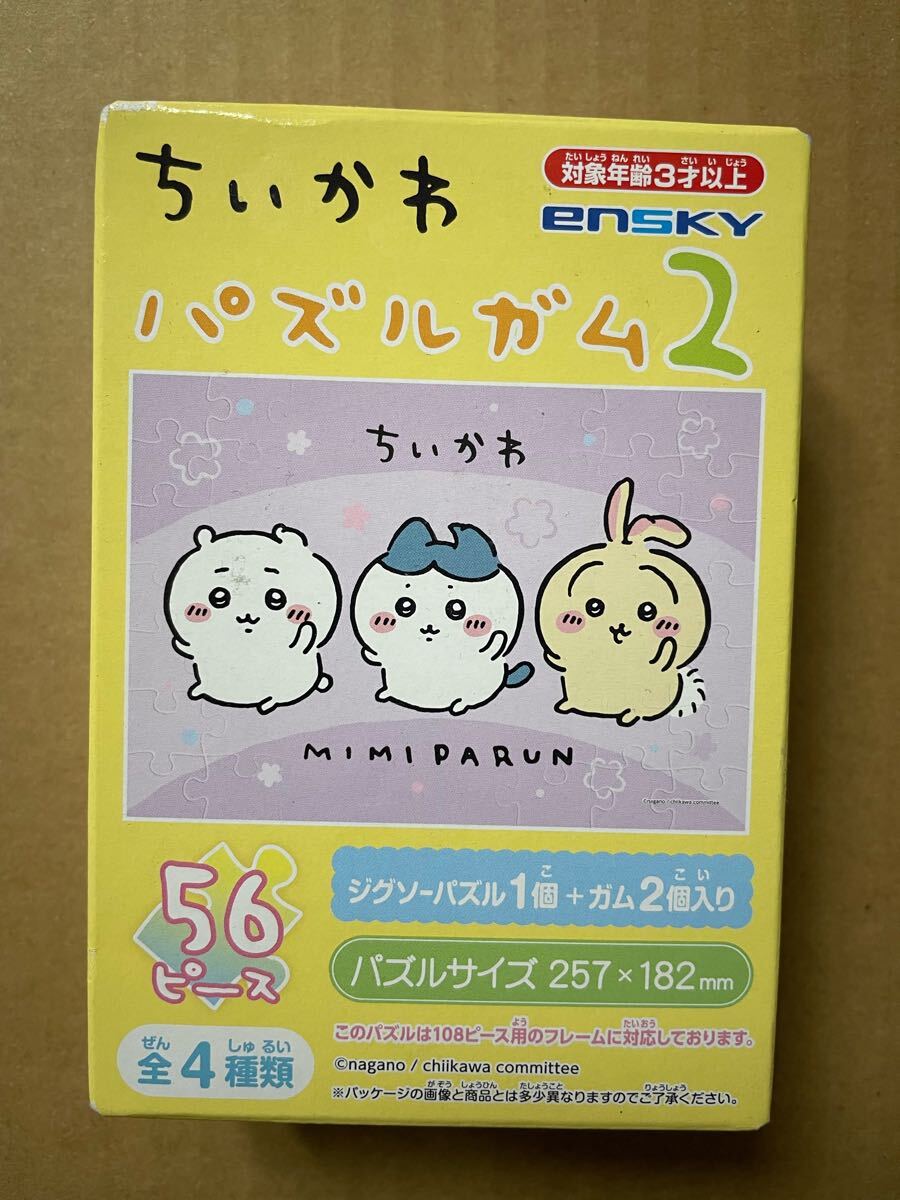 ちいかわのパズルです。写真の画像のイラストの56ピースパズルが封入された食玩です。未開封ですがおまけのガムの賞味期限は切れているはずですので、お召し上がりにならないようお願いいたします。