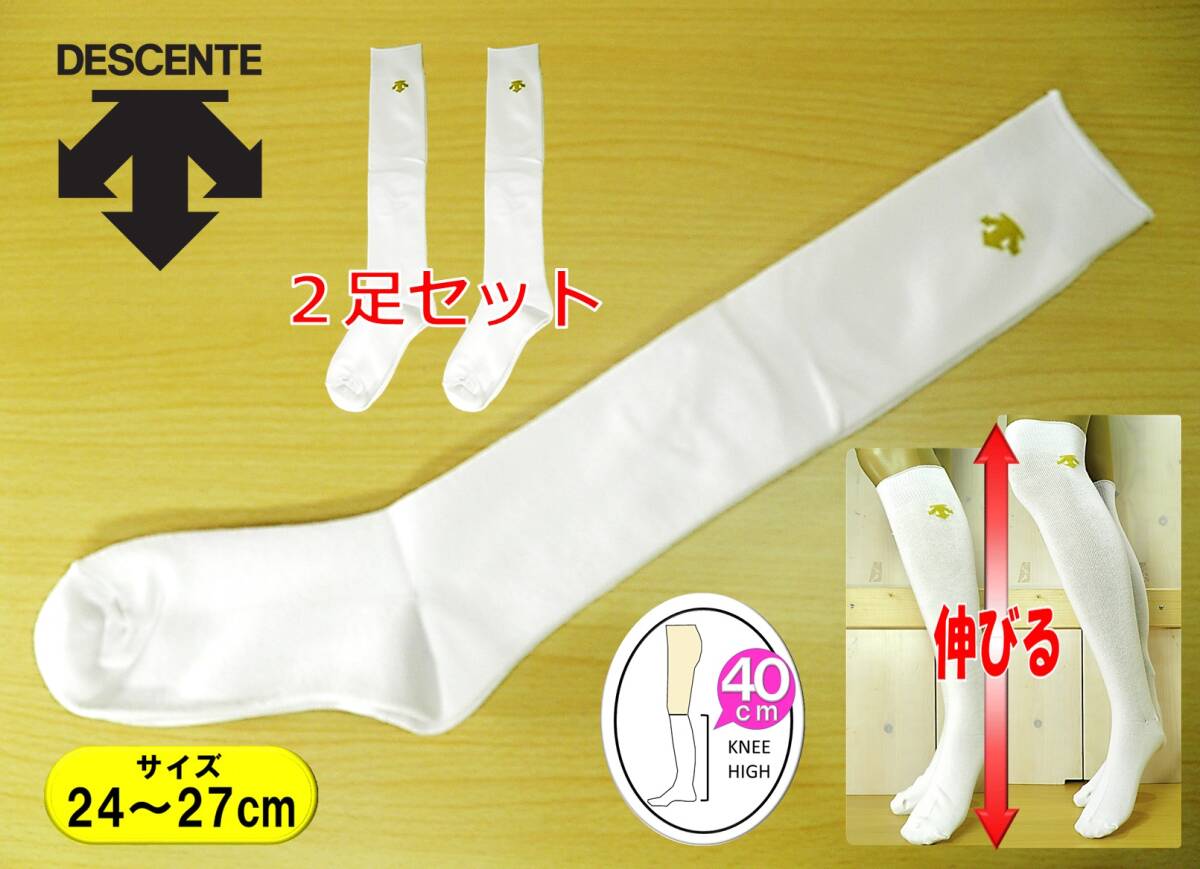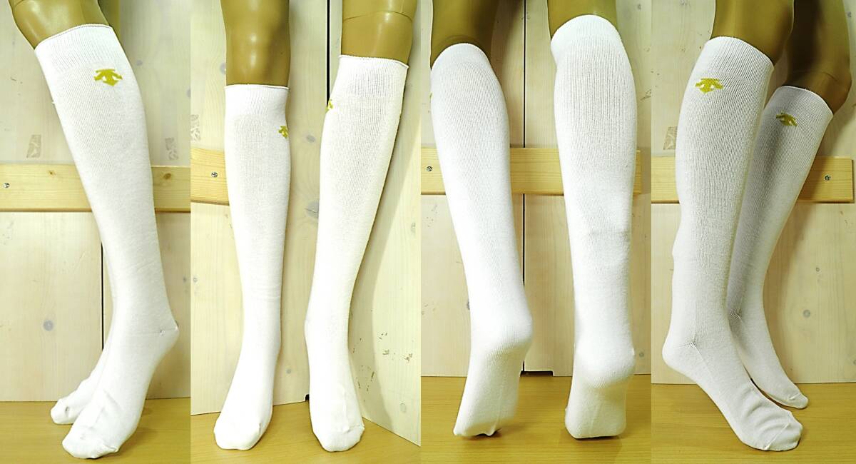【未使用品★レッグウェア】DESCENTE◆デサント◆両面ロゴ刺繍◆白 ハイソックス2足◆アンダーソックス◆24-27cm◆補強◆よく伸びる◆