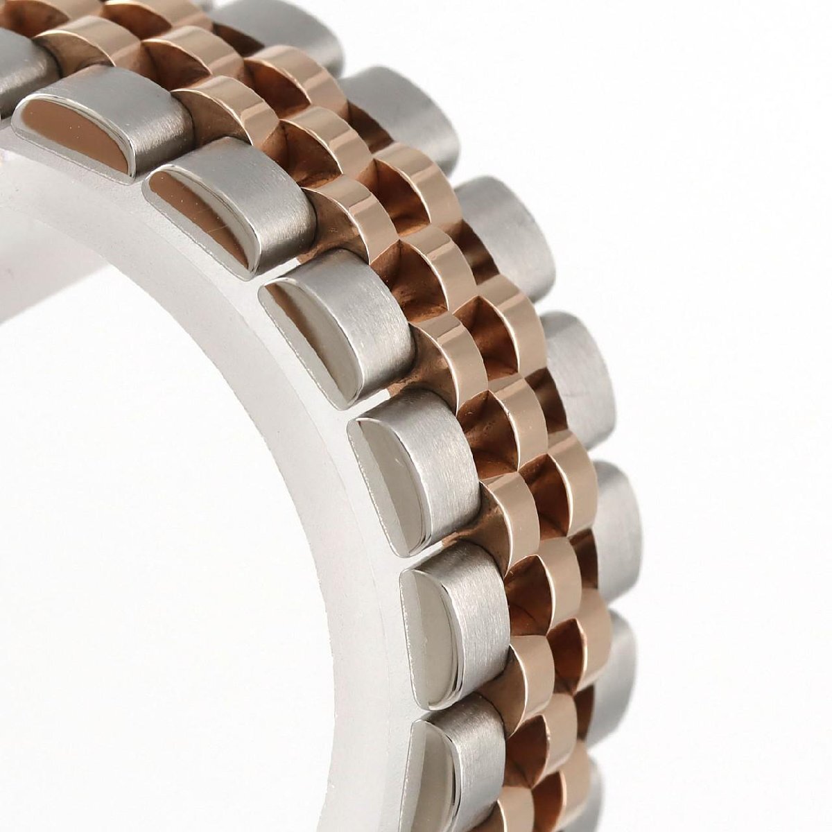 ロレックス伝統の王道モデル「デイトジャスト」。Ref.279381は前モデルと比べ、ケースサイズが2mmボリュームアップし、26mmから28mmになりました。ブレスレットが薄くなったことで、より快適な装着感があります。ムーブメントの精度は上がりパワーリザーブも延長され、機能面でも充実しています。こちらは18金ピンクゴールドとステンレスのコンビモデルです。