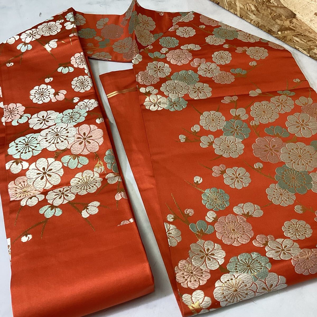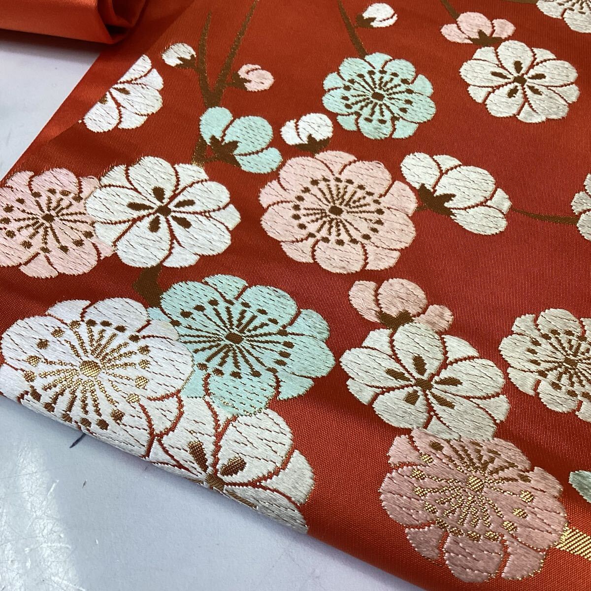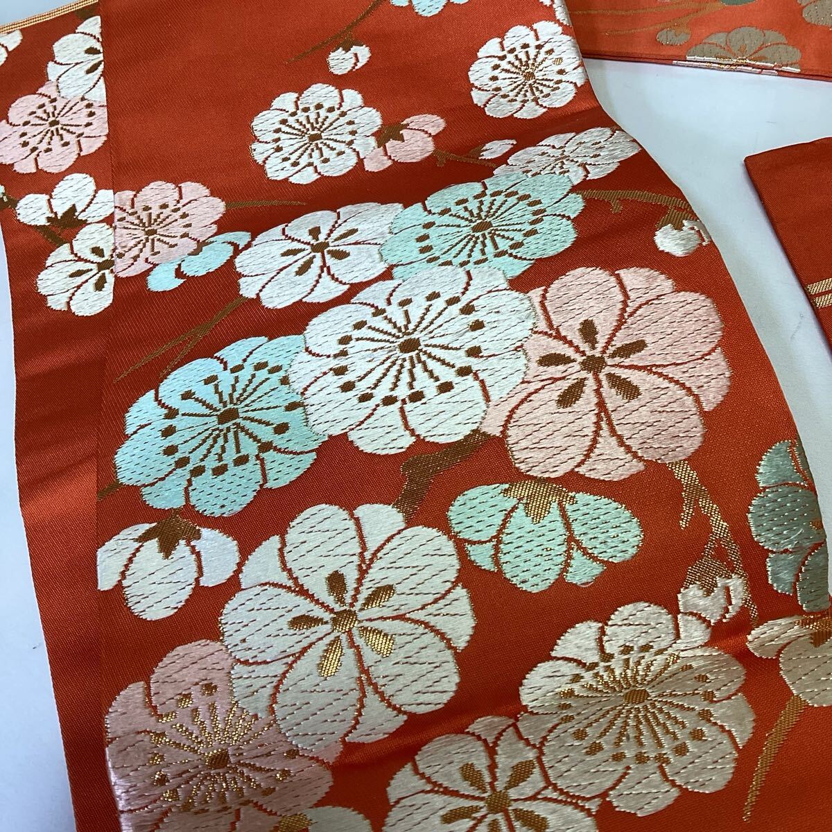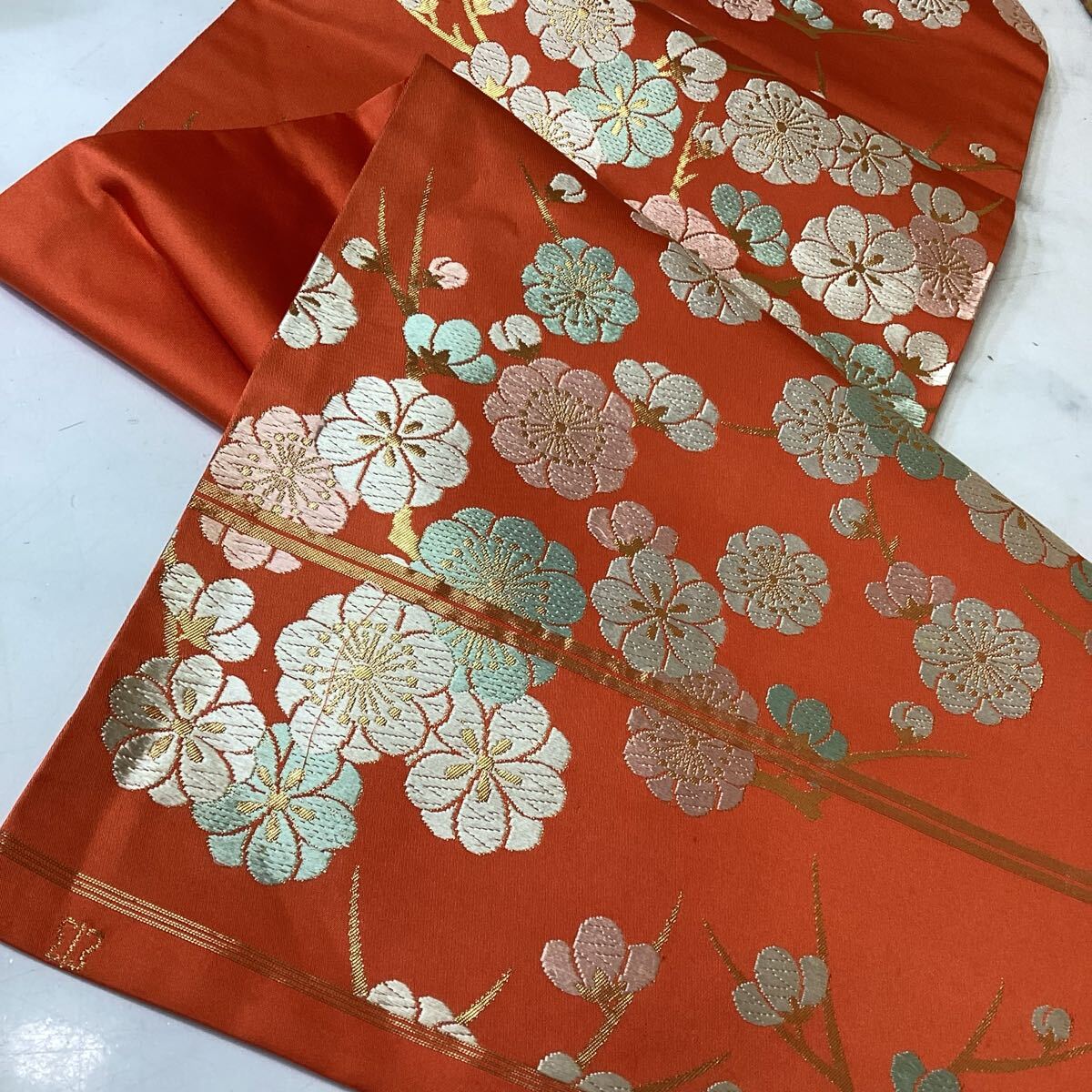 和装 着物 名古屋帯 オレンジ 梅柄 川島織物 ゴージャス 華やか ち-46