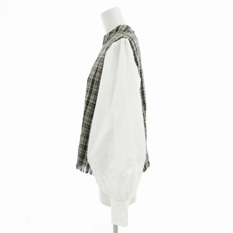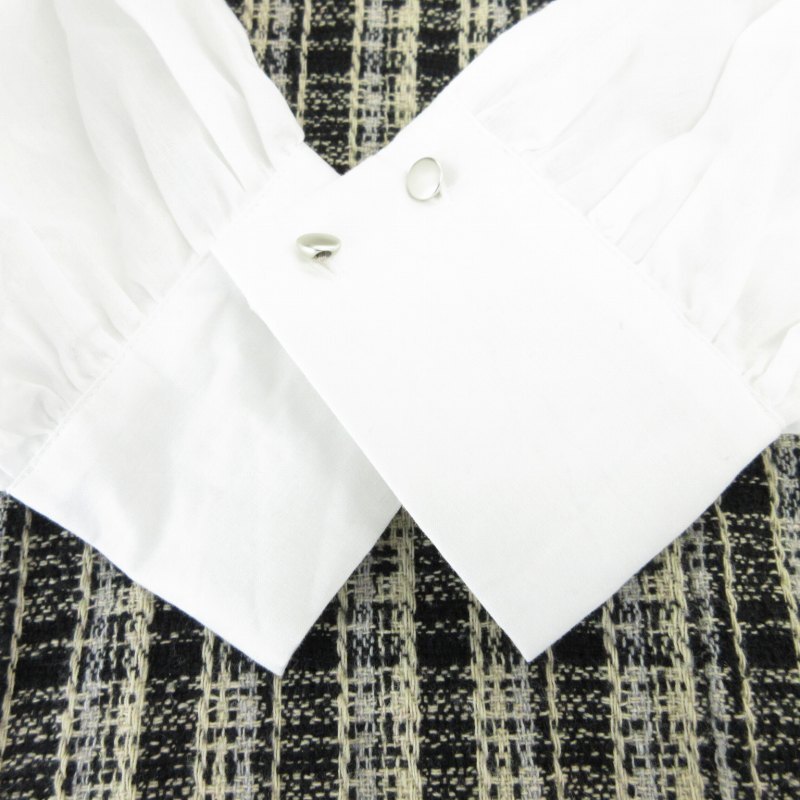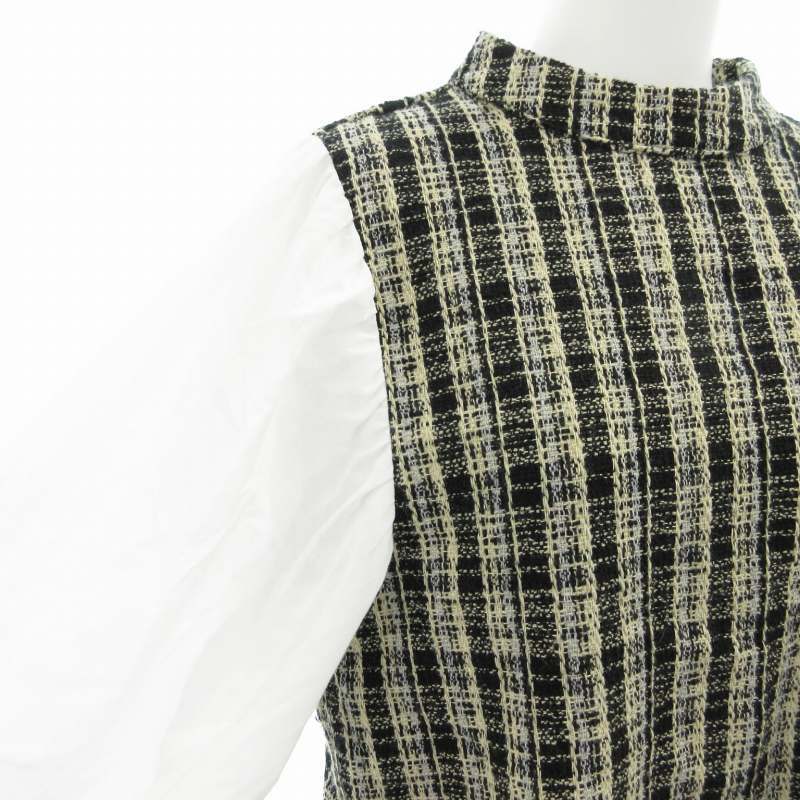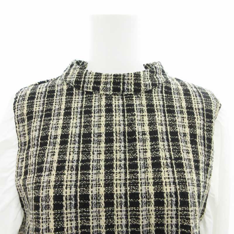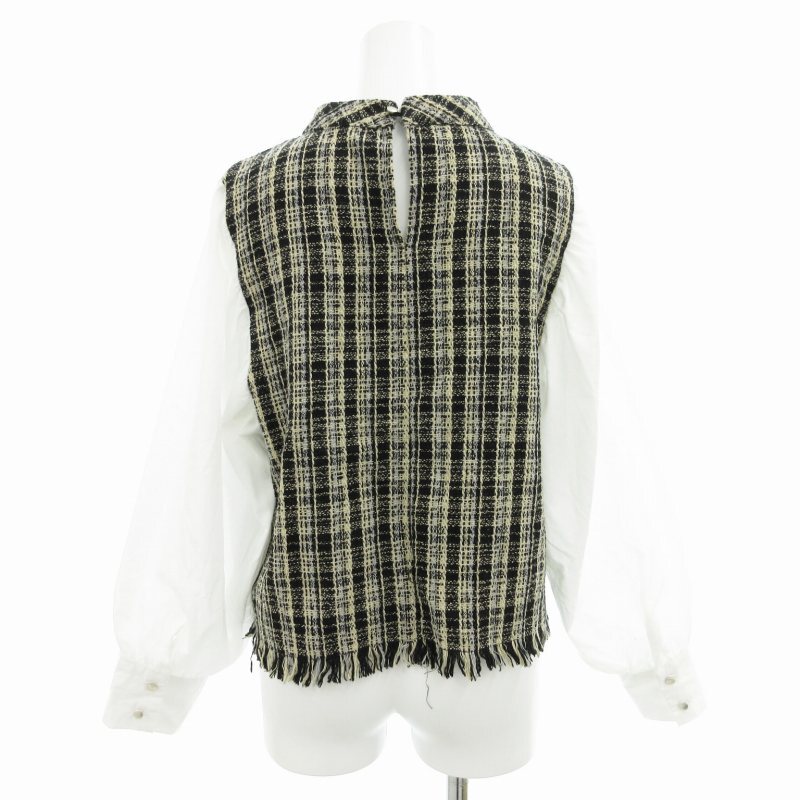 ムルーア MURUA ドッキングブラウス カットソー 長袖 ツイード チェック 切替 黒 ブラック 白 ホワイト /GV ■GY39 レディース