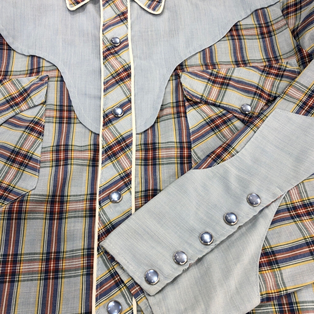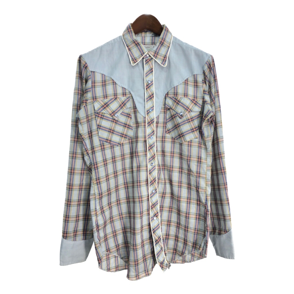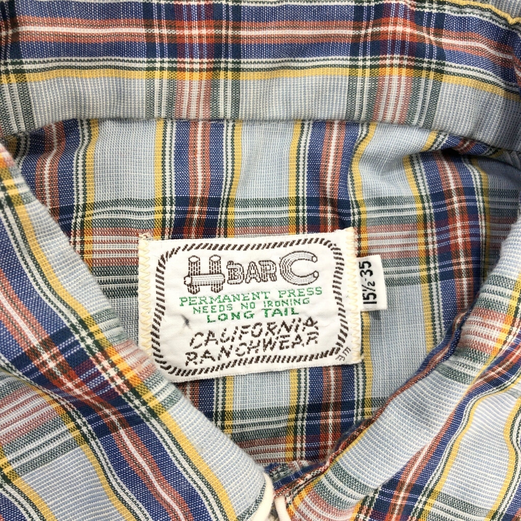 | [商品管理番号] T6500 [ブランド] HbarC/エイチバーシー [サイズ] 15 1/2 [実寸サイズ] 肩幅:約47cm 着丈:約77cm 身幅:約55cm 袖丈:約67cm [主な素材] 表地 : コットン [色] ライトブルー [仕様] 70年代 [状態] | |||