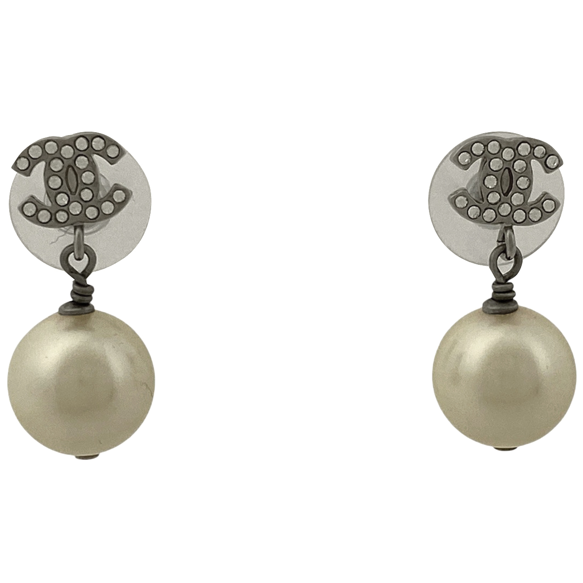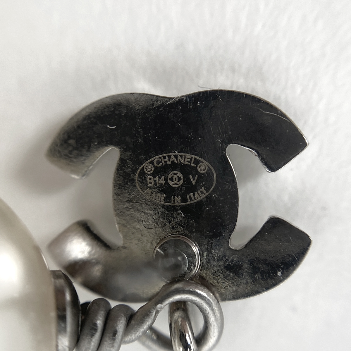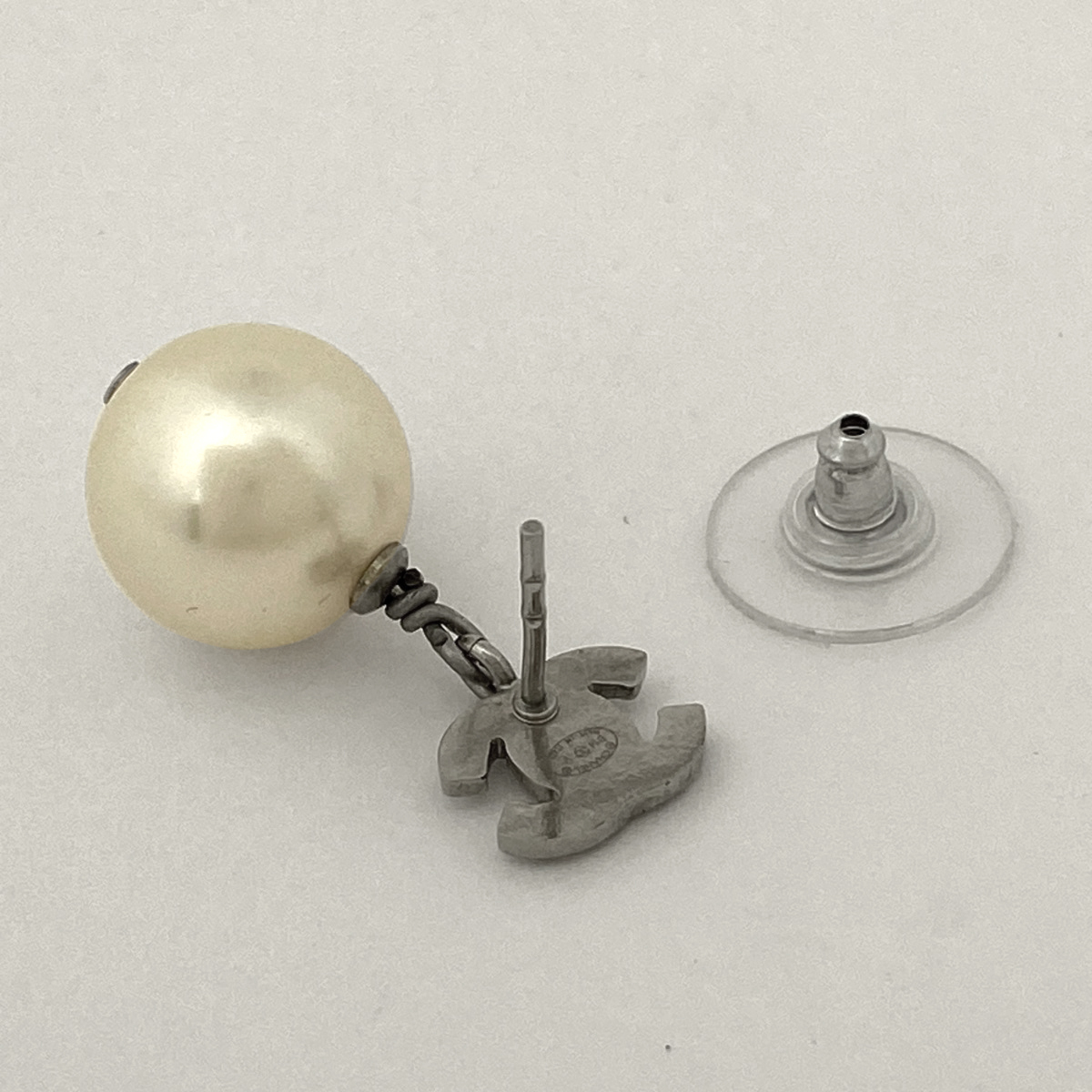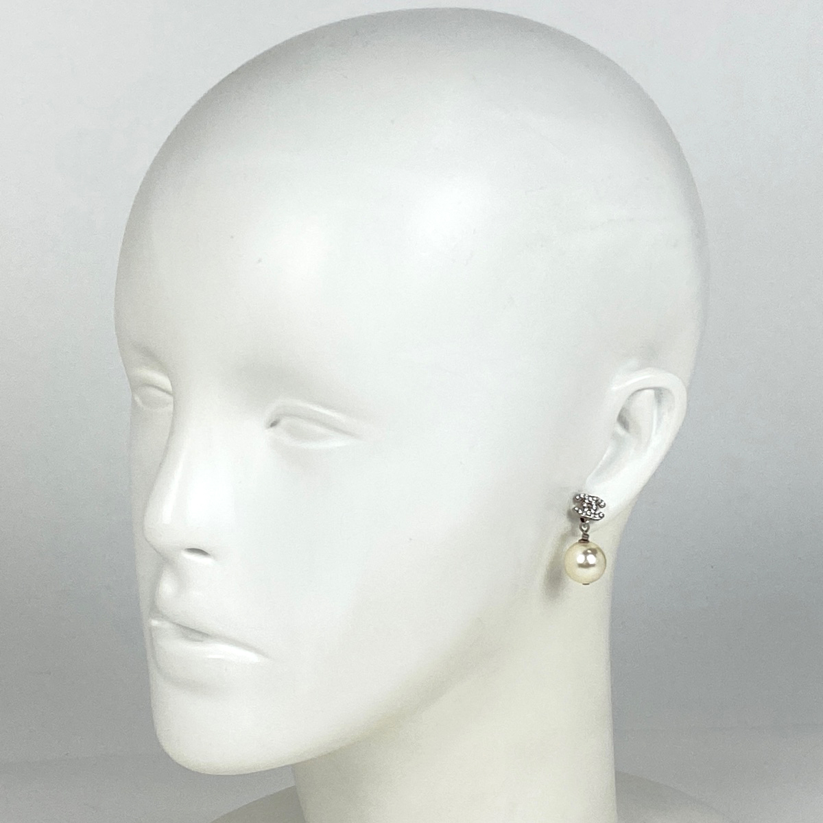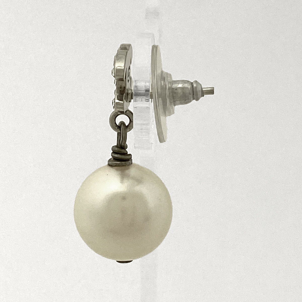 | シャネル CHANEL ココマーク フェイクパール ピアス CC スイング ラインストーン ピアス シルバーメッキ シルバー レディース 【中古】 |