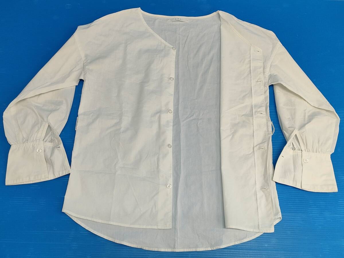 ウエストを絞るオーバーブラウスかと思われますが、パンツにインしてふわっと着ても、ジャケットとしても、幅広く着用できる一着です。